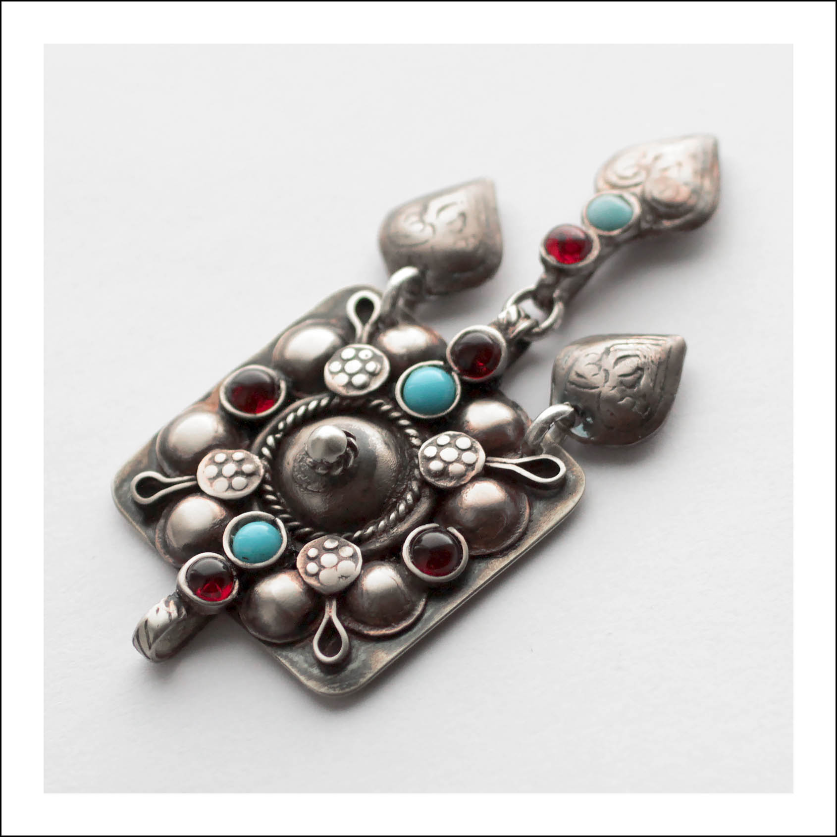 Материал - мельхиор. Цветные вставки - плавленый стеклянный бисер.