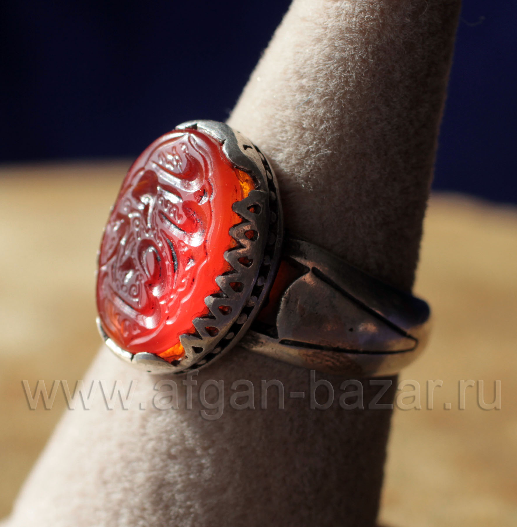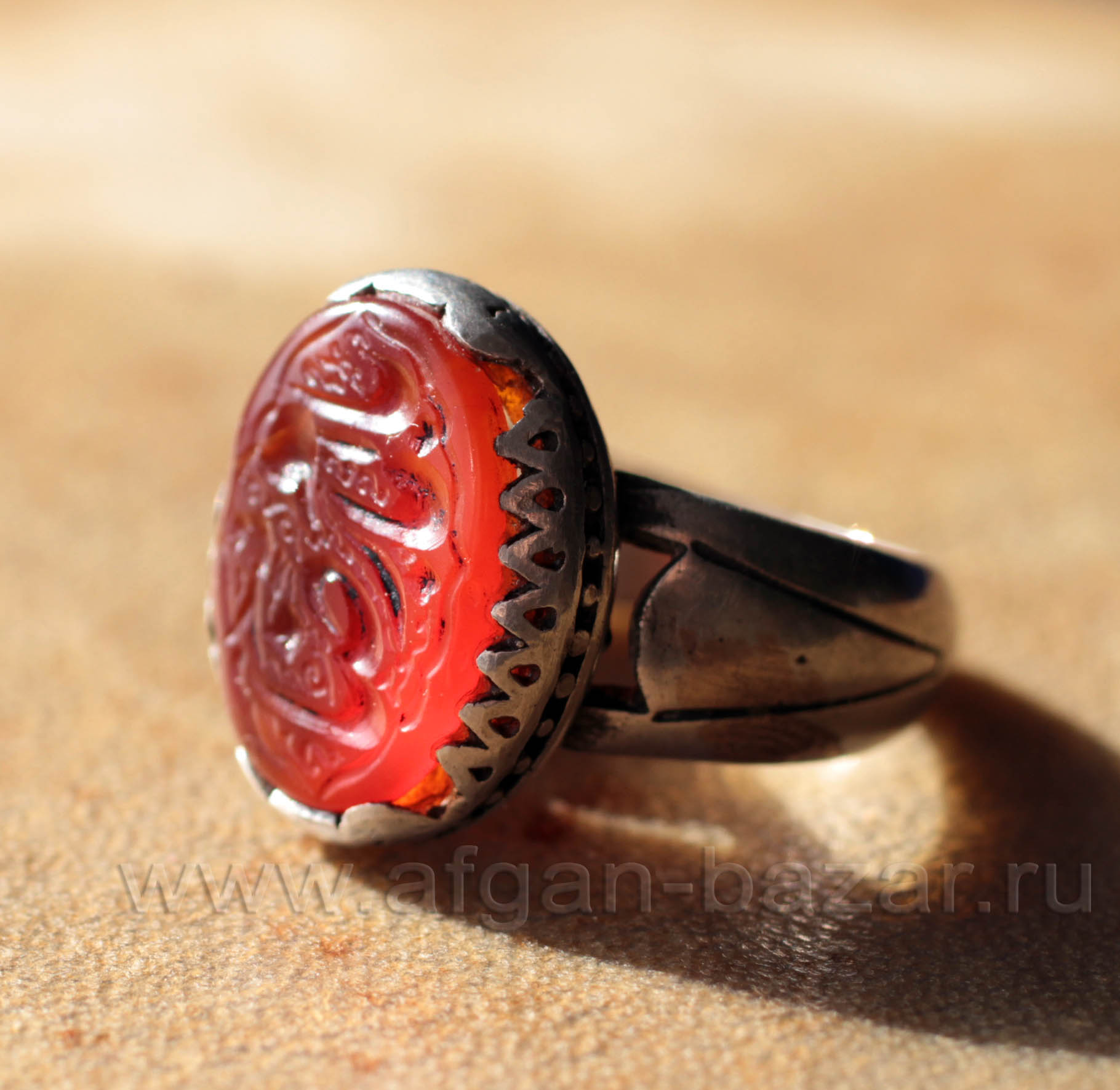 Винтажный иранский мужской перстень с сердоликом и каллиграфической надписью - шиитским зикром.