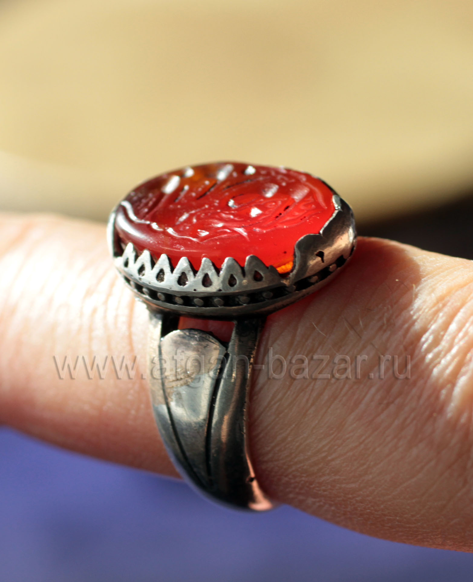 Вставка - сердолик с ручной гравировкой, шиитским зикром, поминовением Имама Резы ( یا امام رضا - Йа Имам Реза).