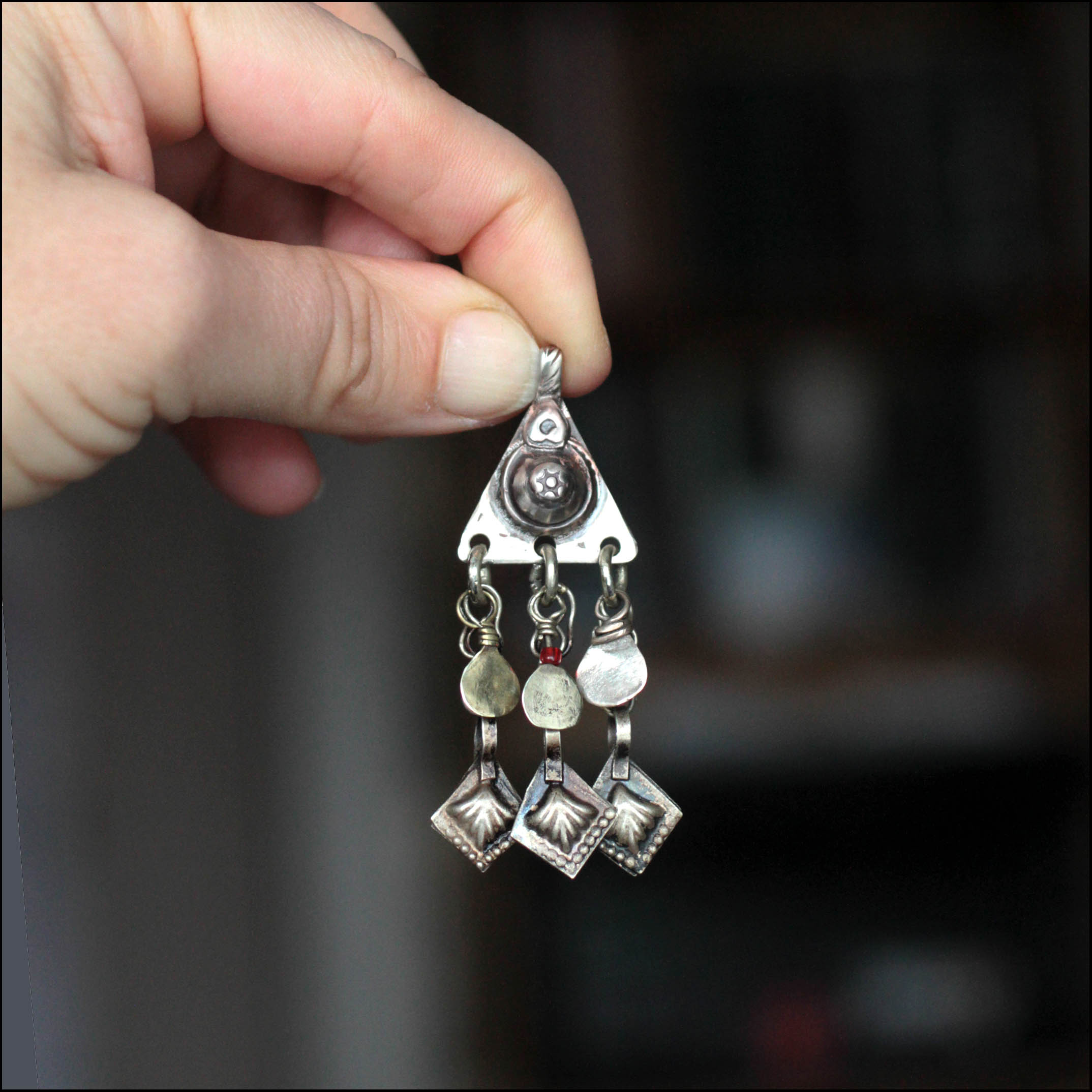 Материал: мельхиор. Подвесы снизу - детали кучи украшения (Tribal Kuchi Jewelry).