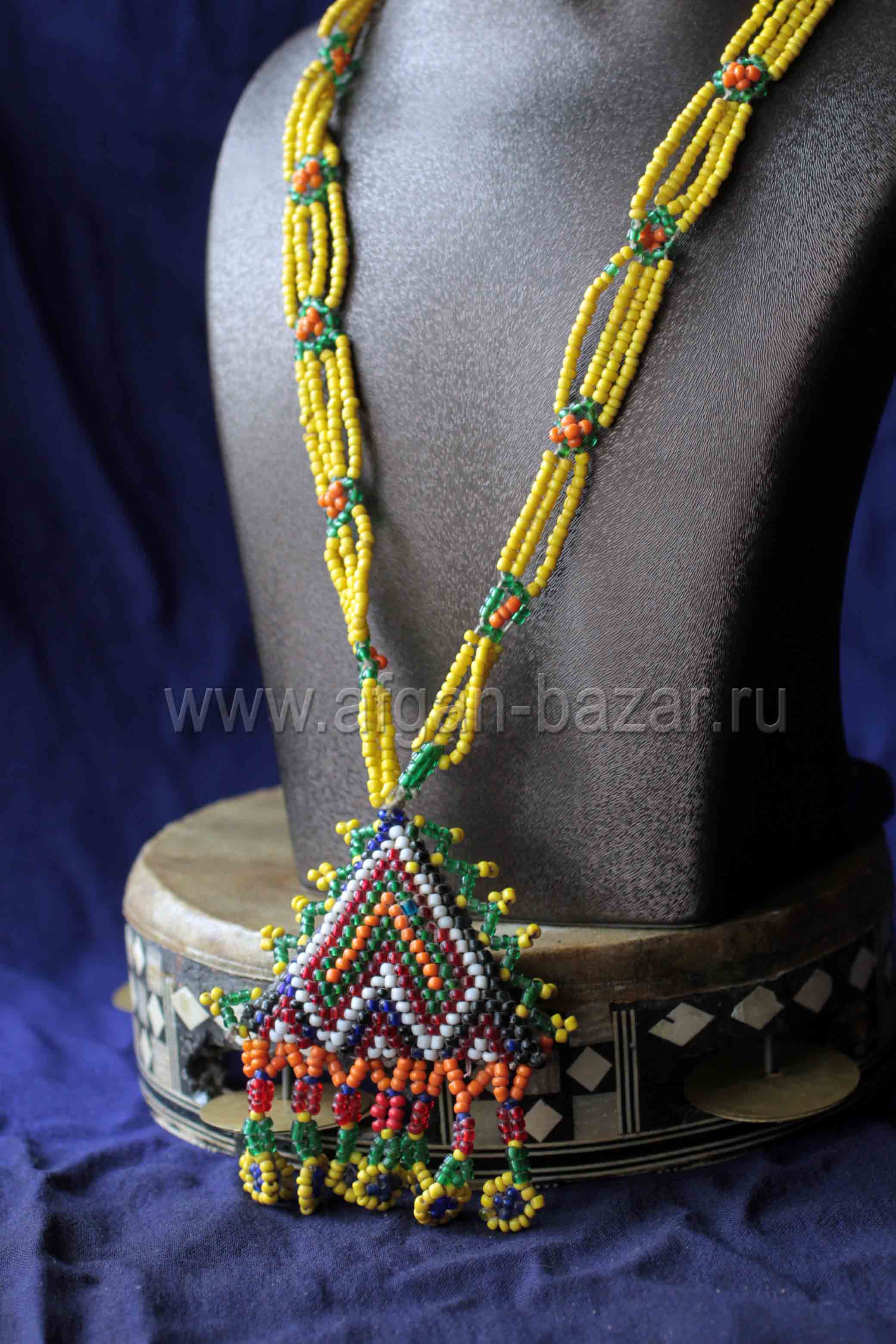Колье из бисера с треугольной подвеской-кулоном (Kuchi Tribal Beadwork). Афганистана, племена Кучи, 20-21 вв.
