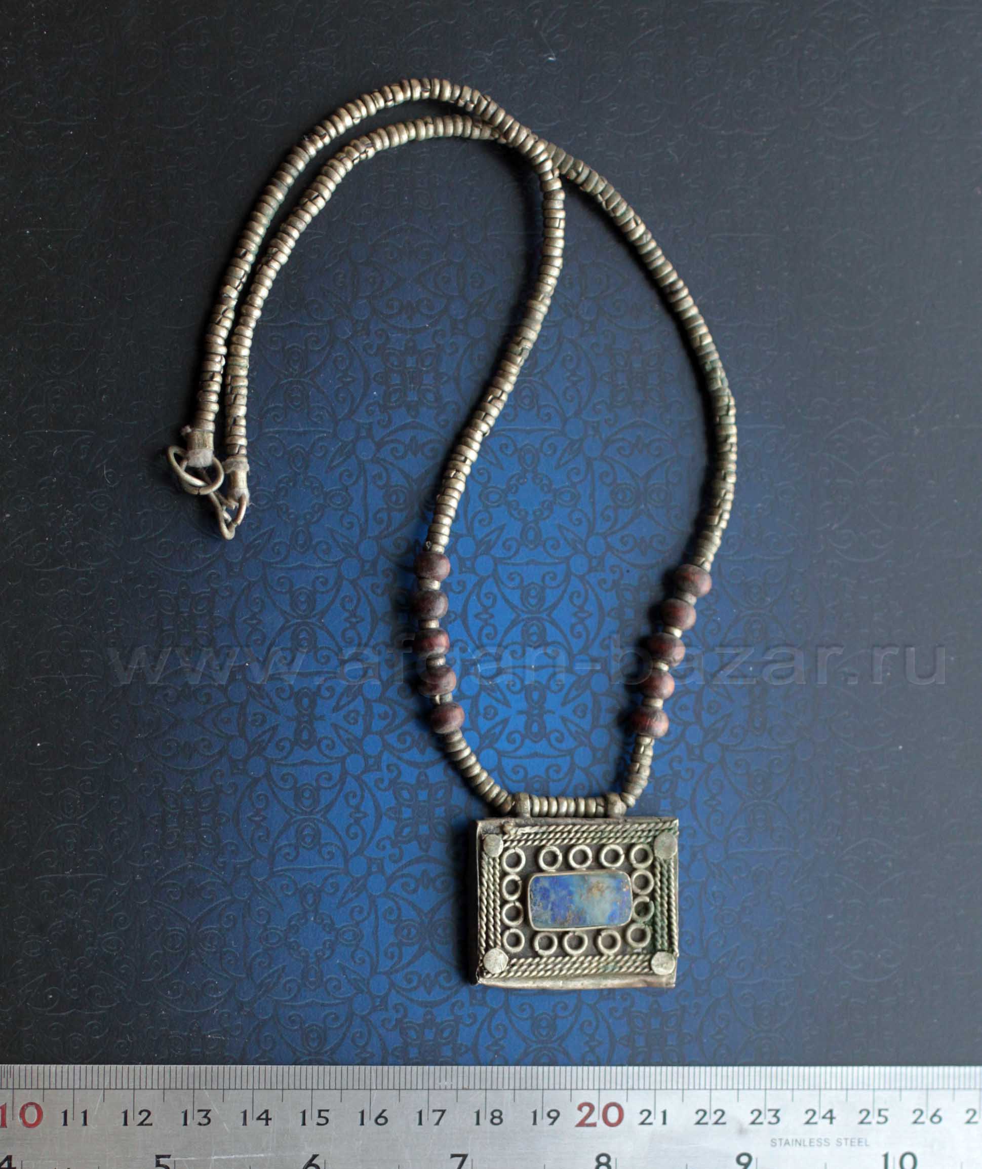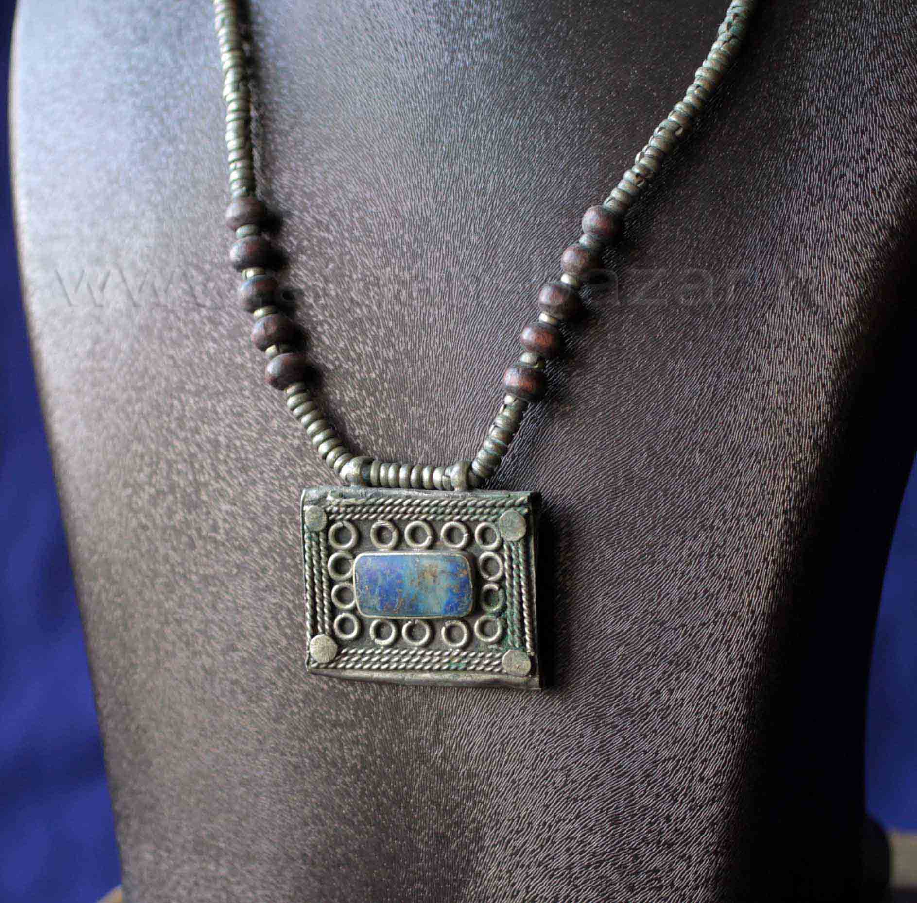 Афганское колье с лазуритом и амулетом "Тавиз" - деталью старого племенного украшения. Афганистан или Пакистан, 20 в.