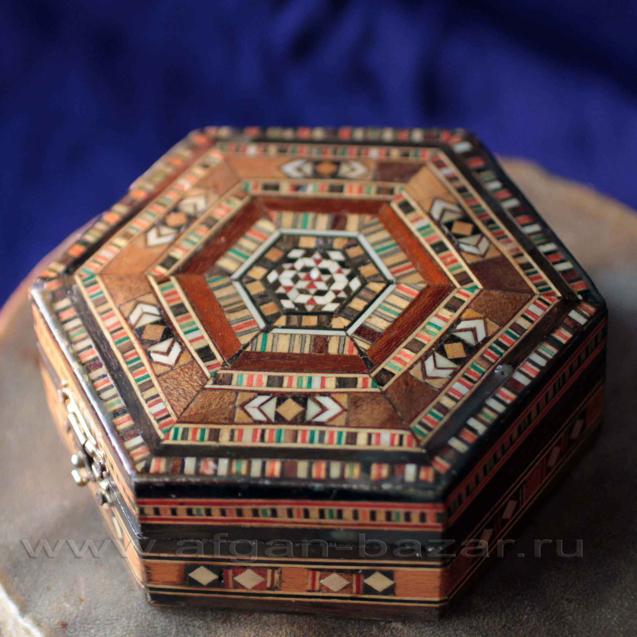 Винтажная шкатулка из дерева с резьбой и инкрустацией. Турция, Хатай (Антакья), 20 - начало 21 в.