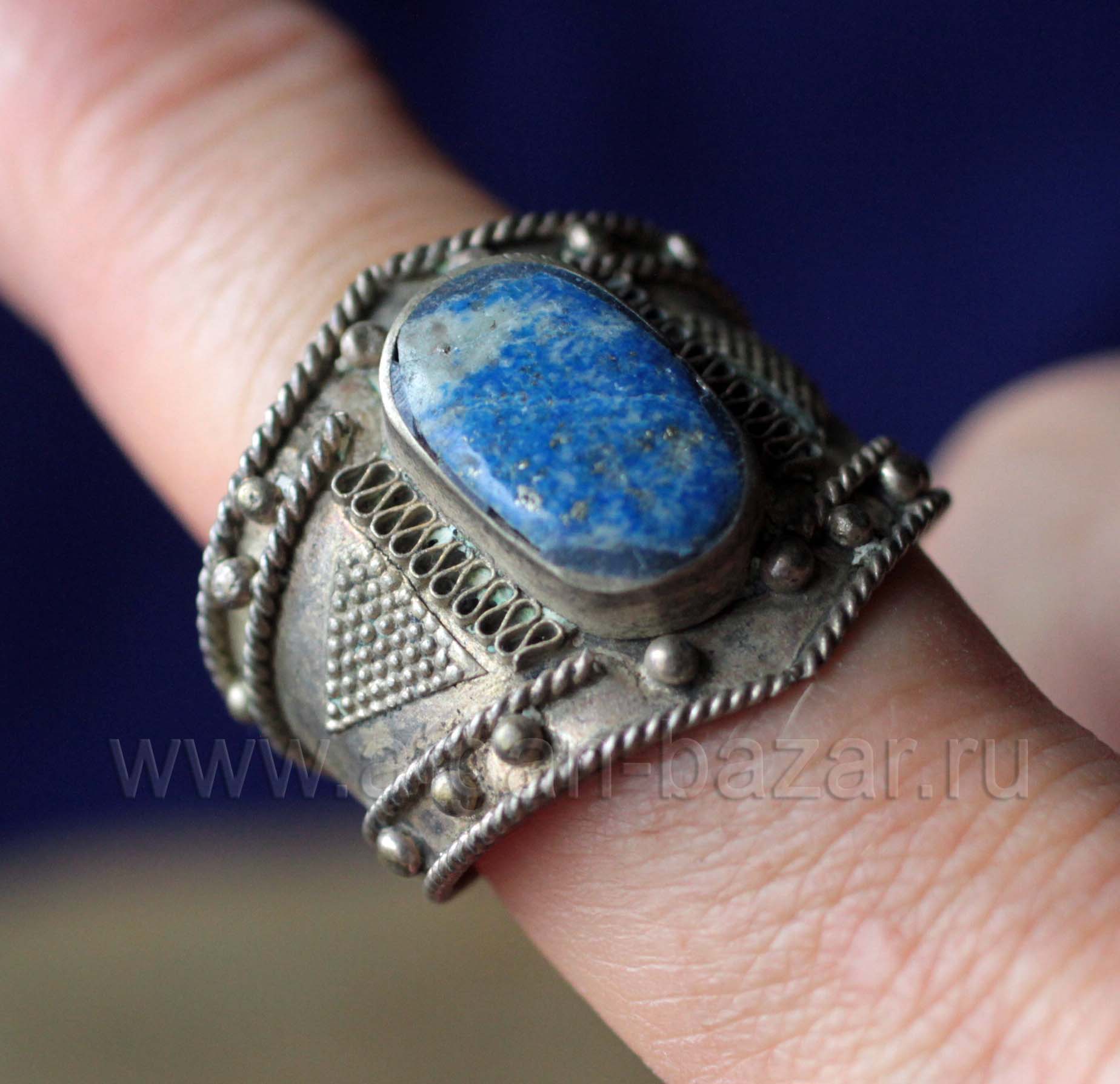 Винтажный афганский перстень с лазуритом.