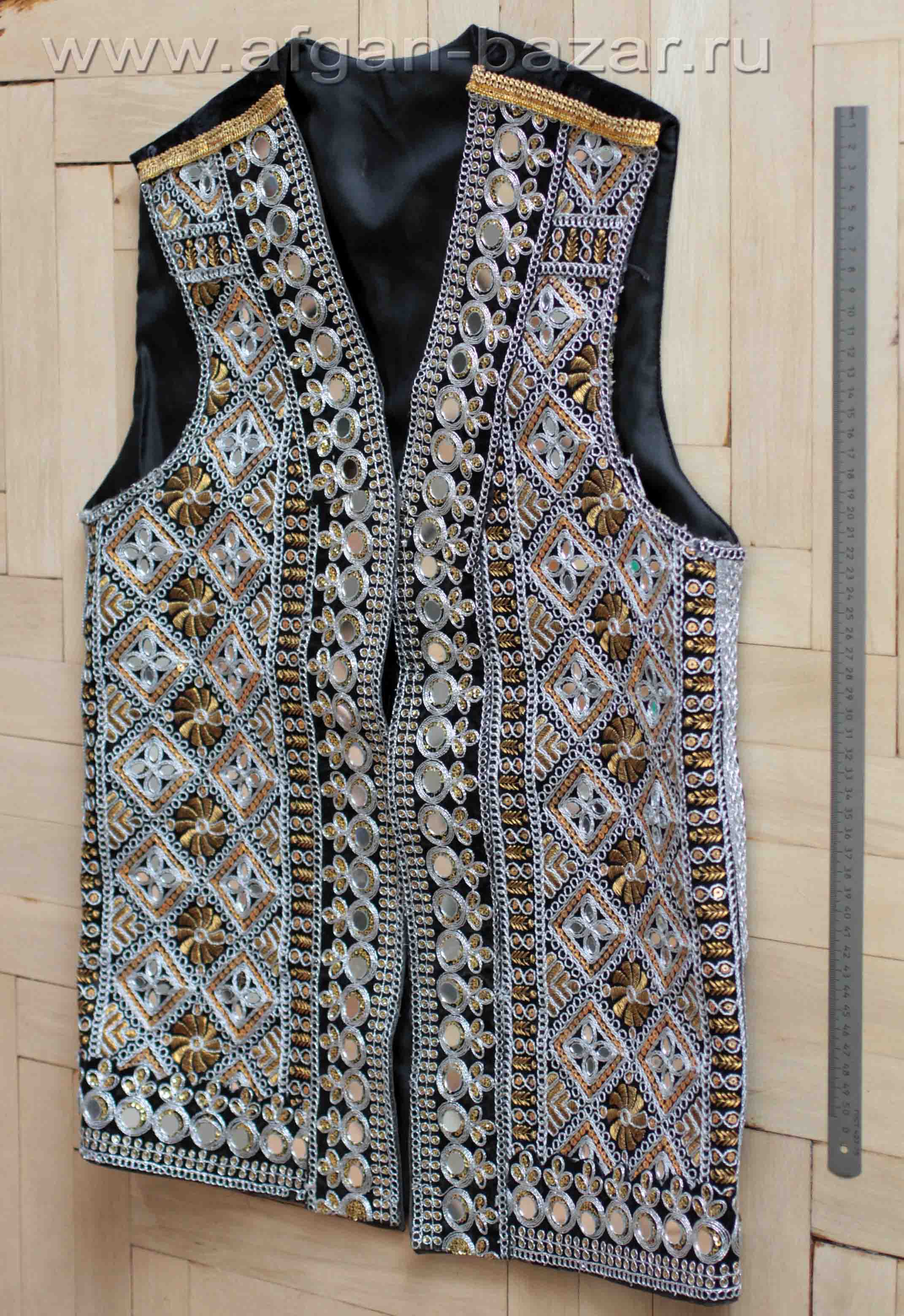 Афганская бархатная жилетка Маскат, расшитая люстром и зеркальцами-шиша.
