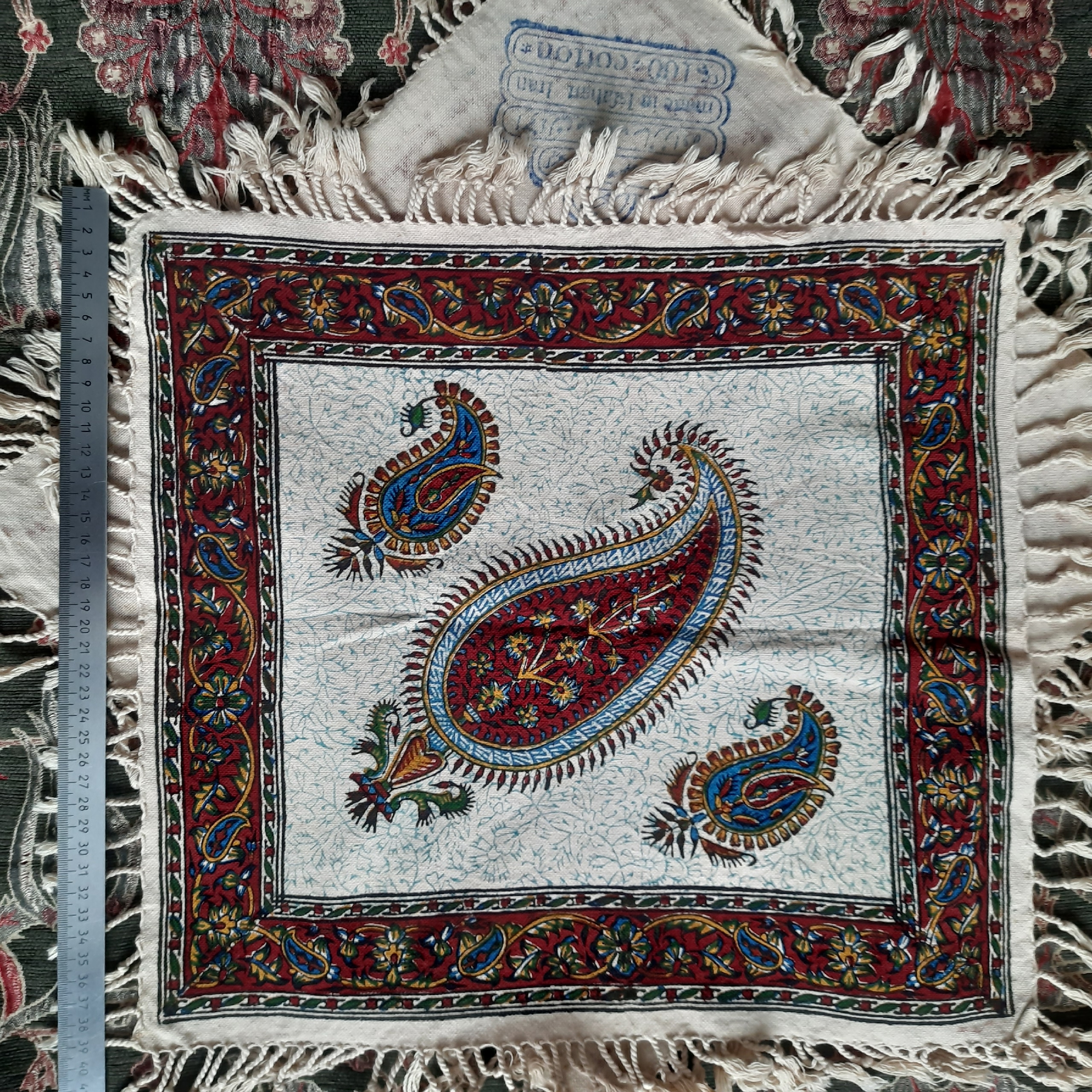 Декоративная салфетка с традиционным иранским набойным орнаментом "Каламкар". Иран, современная работа