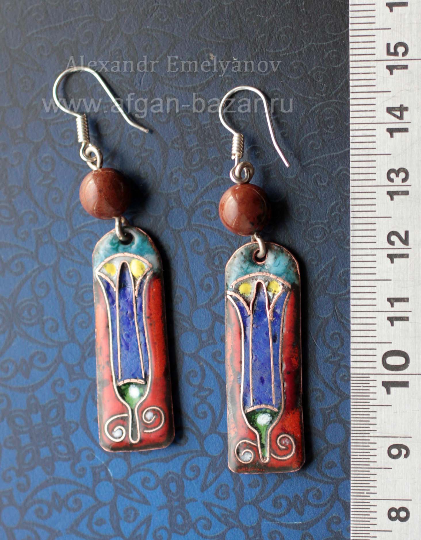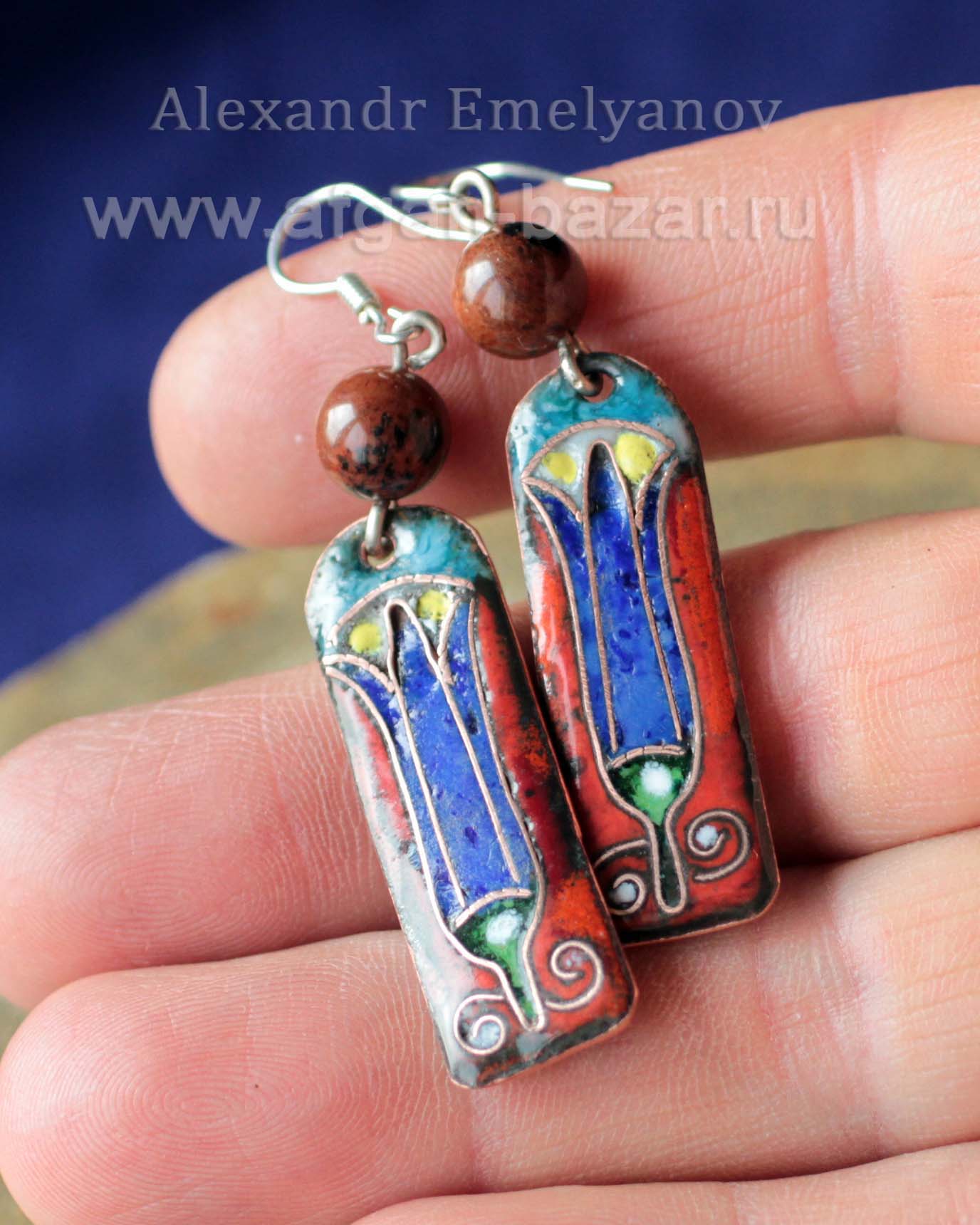 Александр Емельянов. Серьги "Капли огня". Медь, горячая перегородчатая эмаль