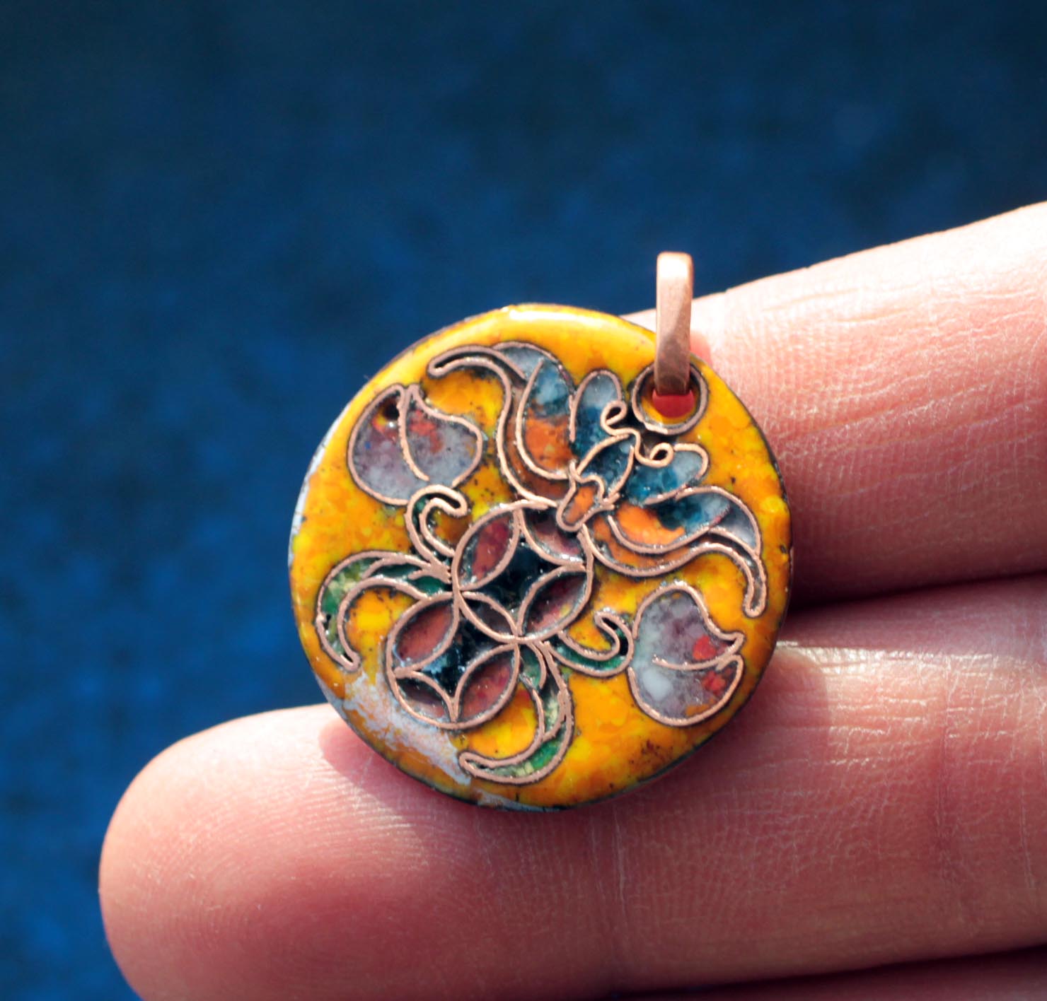 Медь, горячая перегородчатая эмаль.