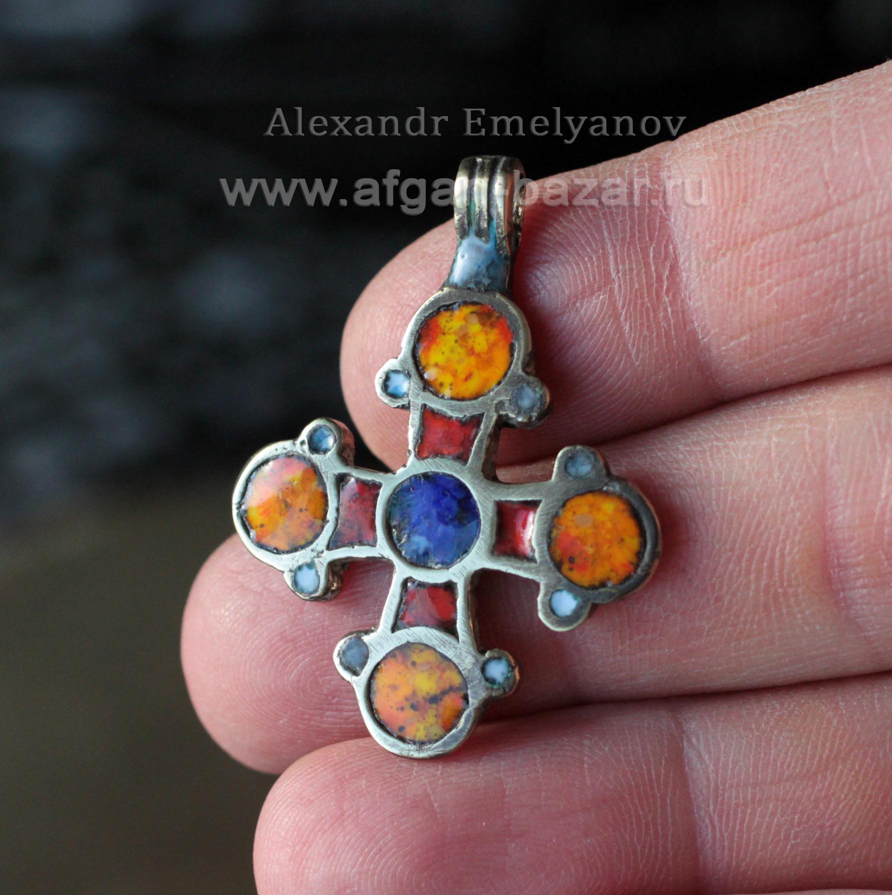 Лицевая сторона креста декорирована горячей выемчатой эмалью с применением авторских технологий горячей эмали.