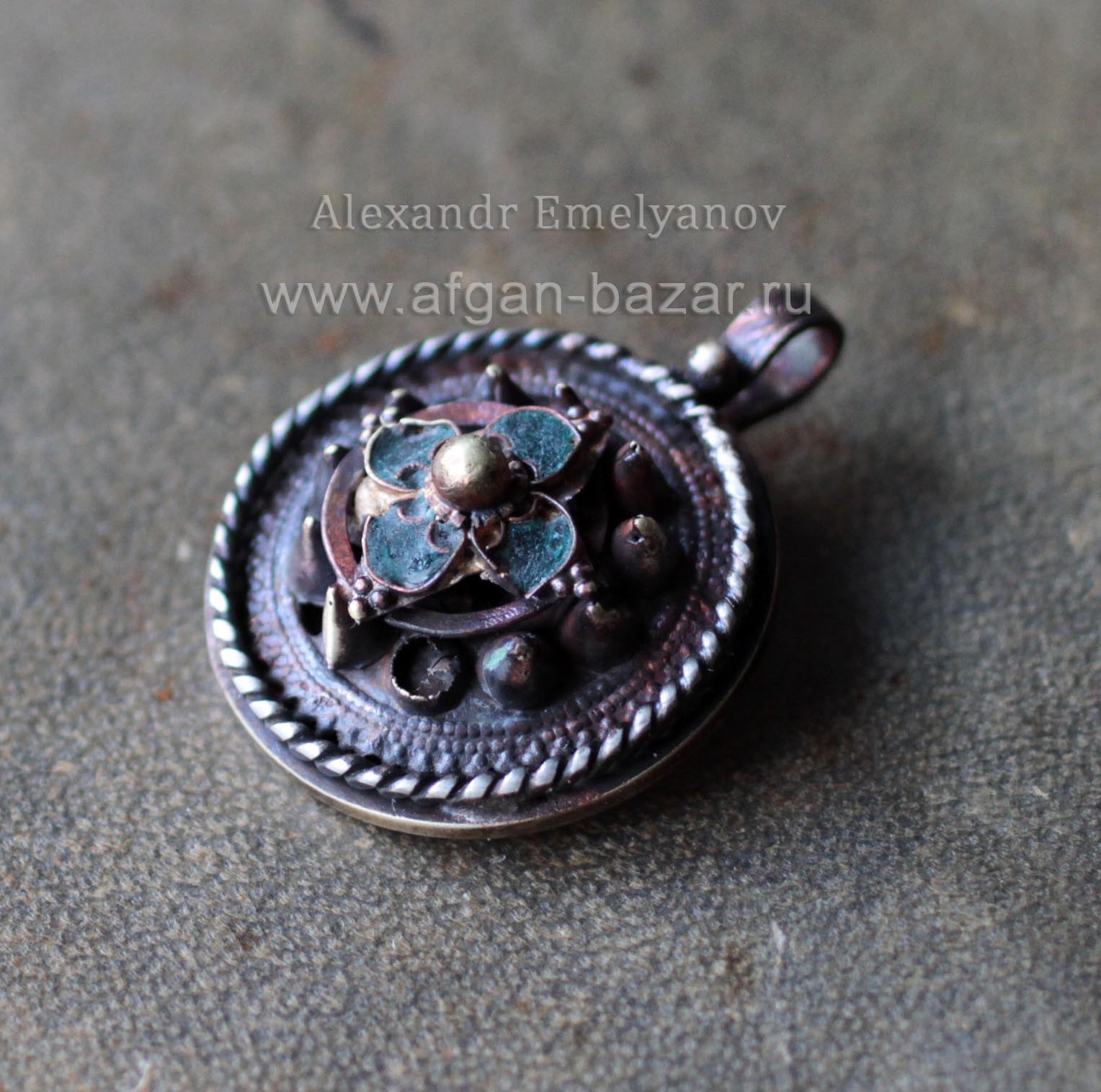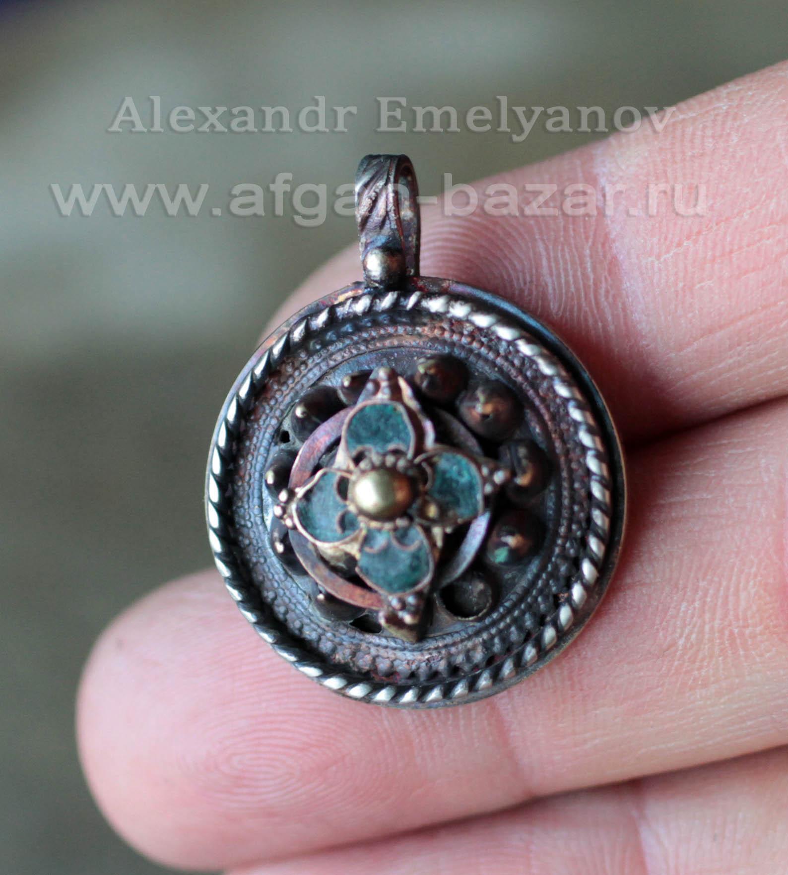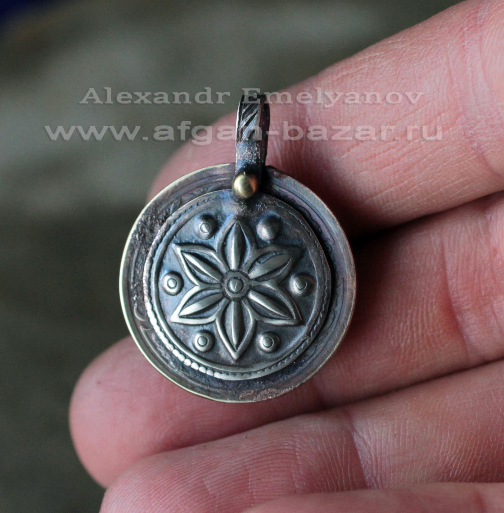 Подвеска в винтажном стиле из монеты по мотивам афганских племенных украшений.