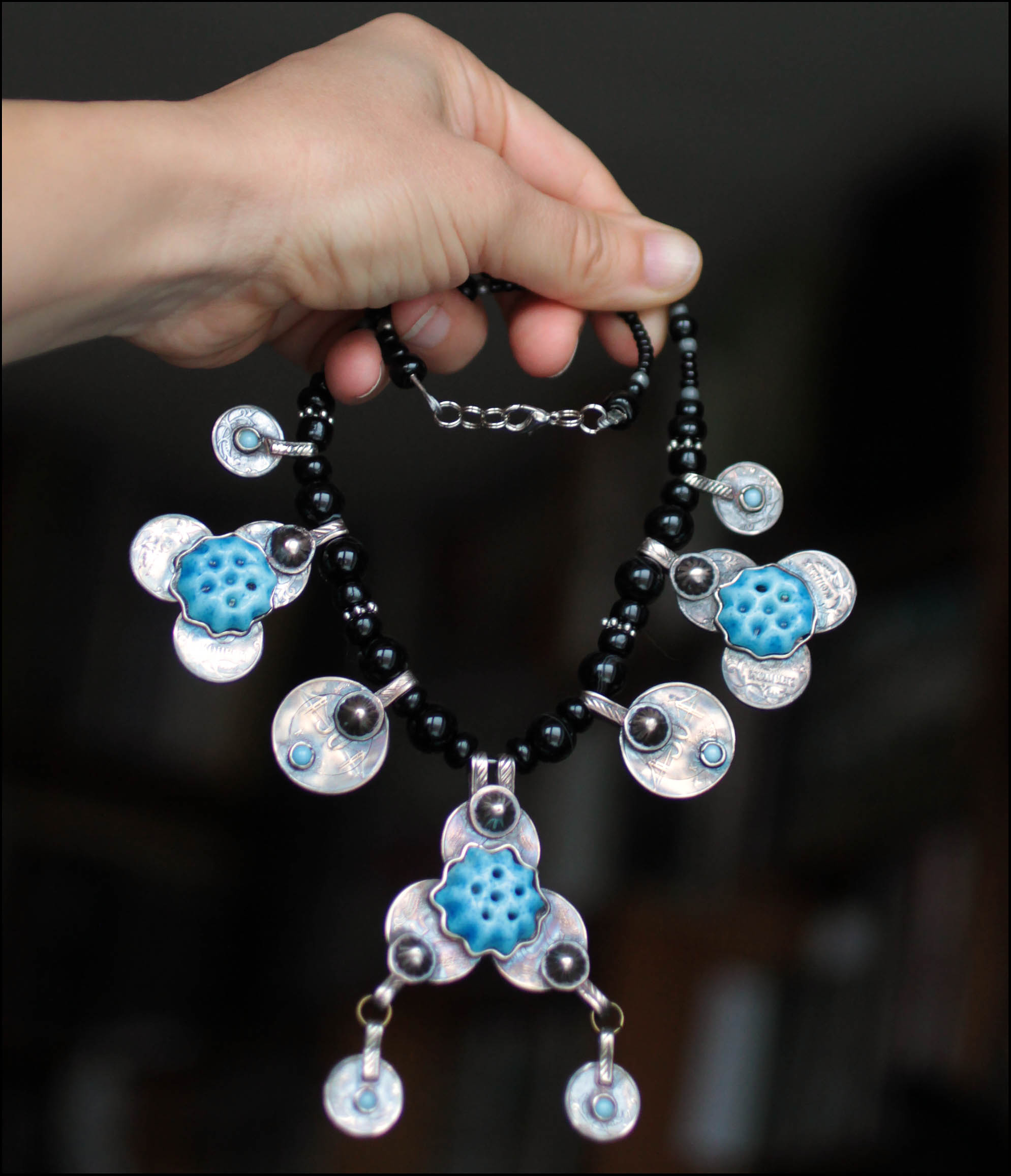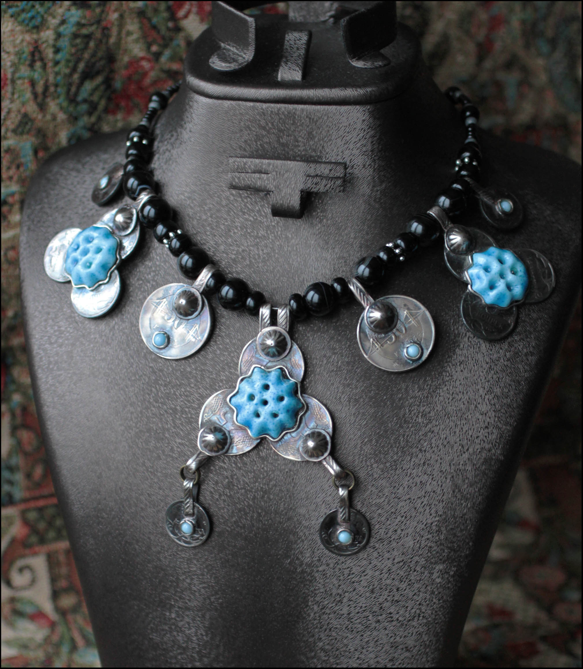 Марокканское колье "Derga selsela" (درقة سلسلة) с бусиной-амулетом "Taghamout".