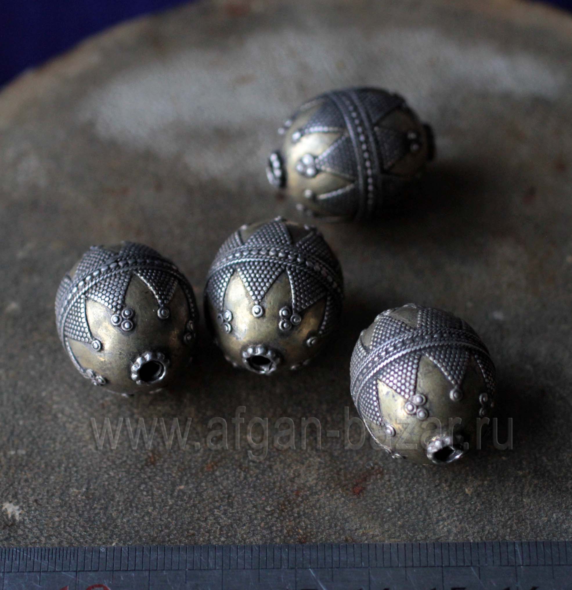 Винтажная серебряная бусина в казахском стиле. Казахстан или Северный Афганистан