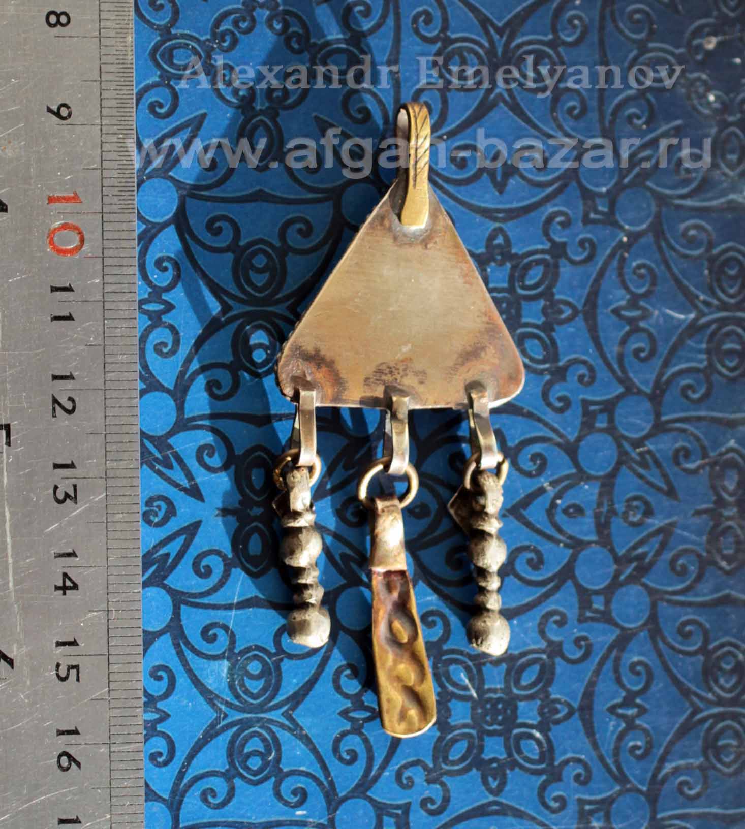 Латунь, скань, зернь, штампованные накладки на обратной стороне, полученные с помощью старых афганских матриц для басмы.