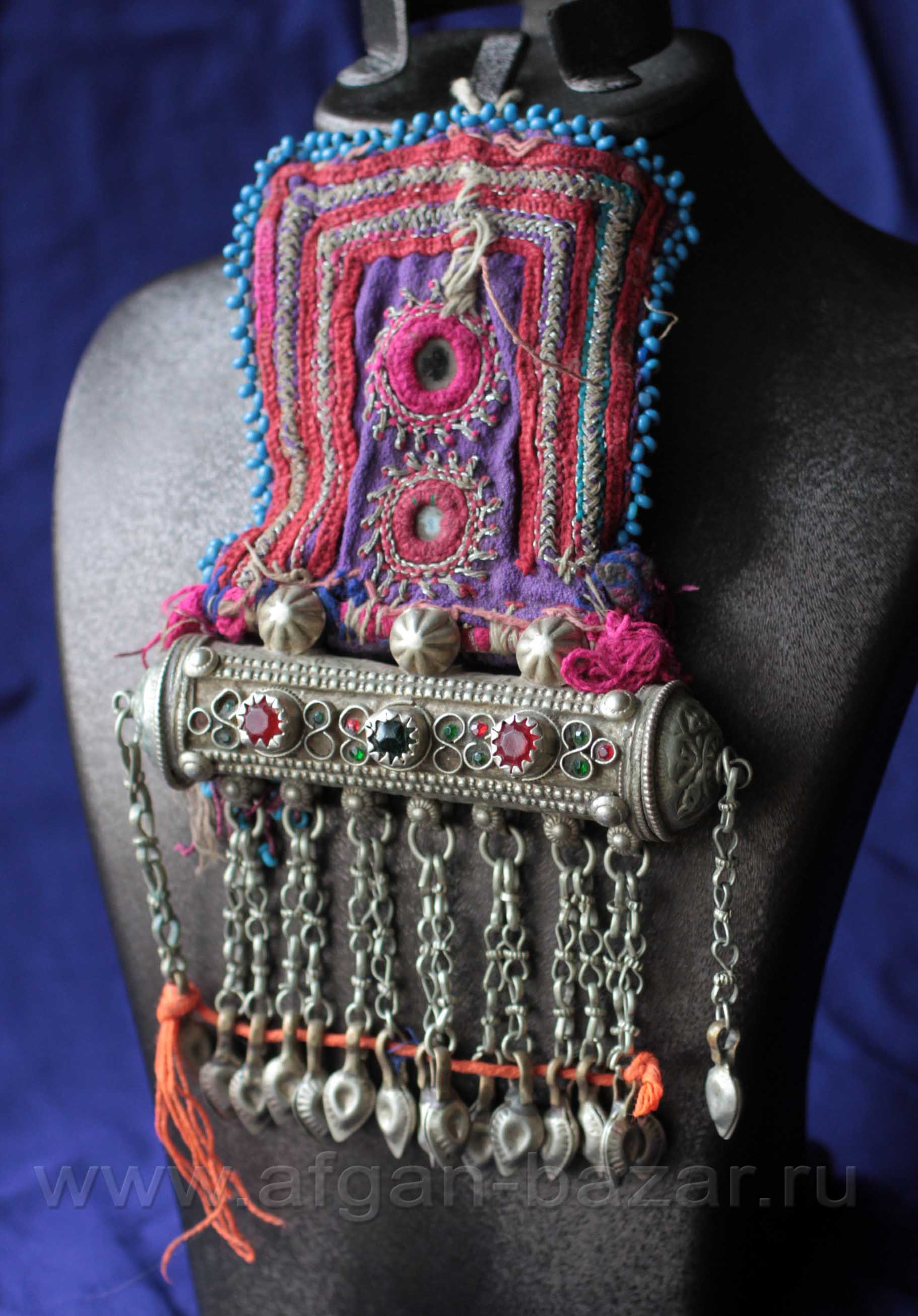 Подвеска-амулет Тавиз с фрагментом нашивки на платье, декор костюма. Северный Пакистан или восточный Афганистан (Газни, Пактия) - снято с продажи для создания выставочного фонда