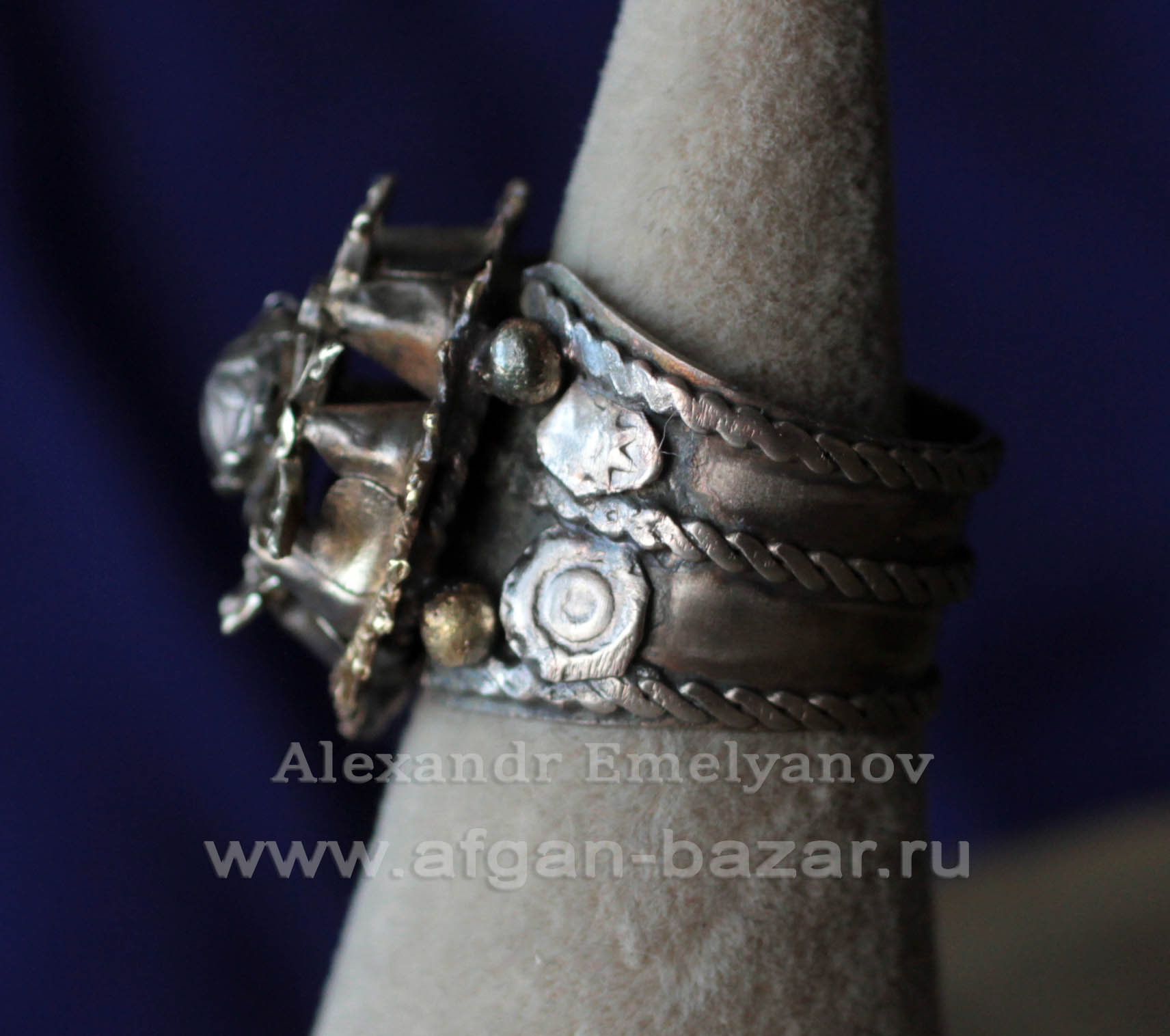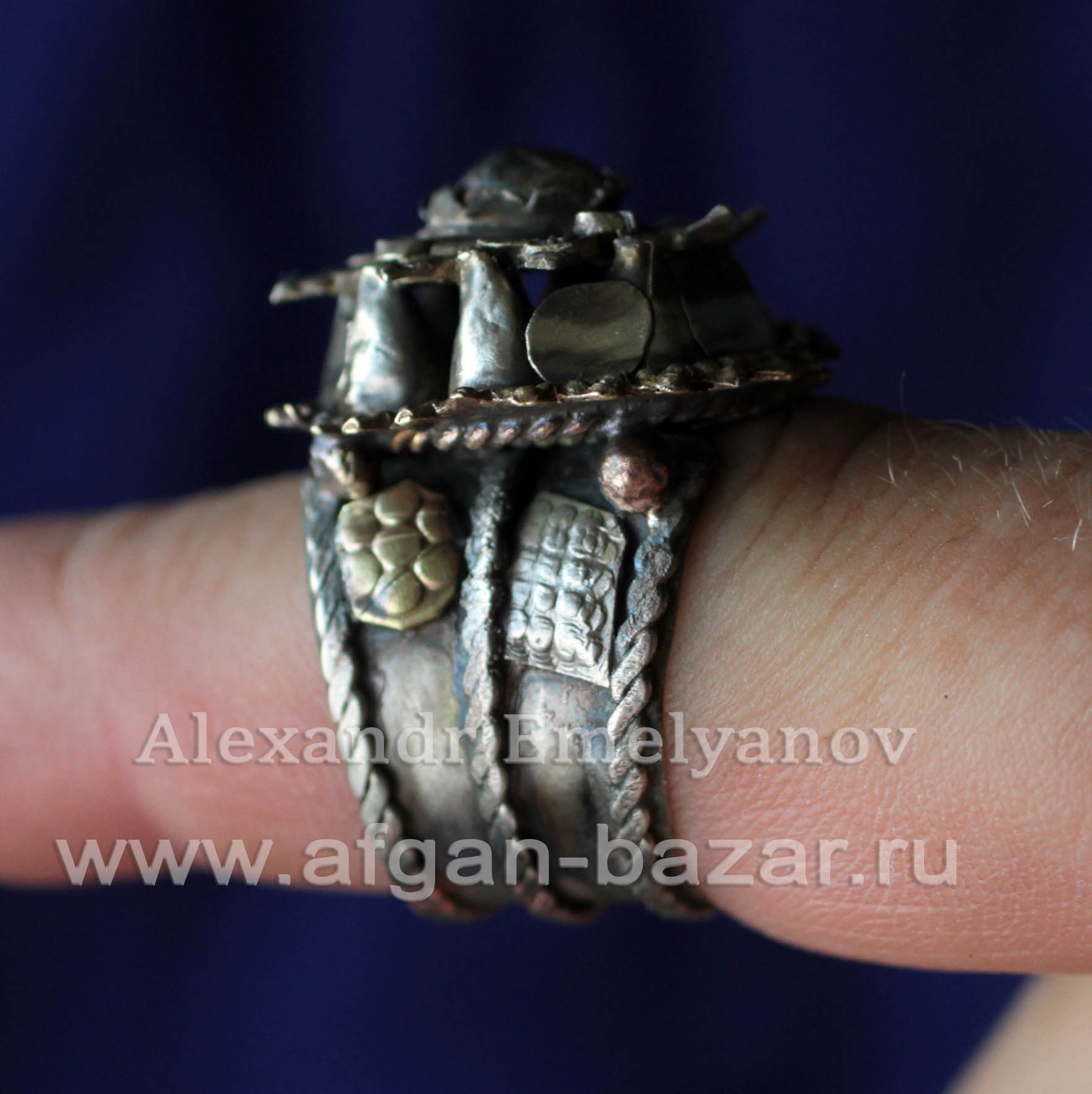Перстень в афганском стиле, сделанный из деталей старых афганских украшений. Размер - 18