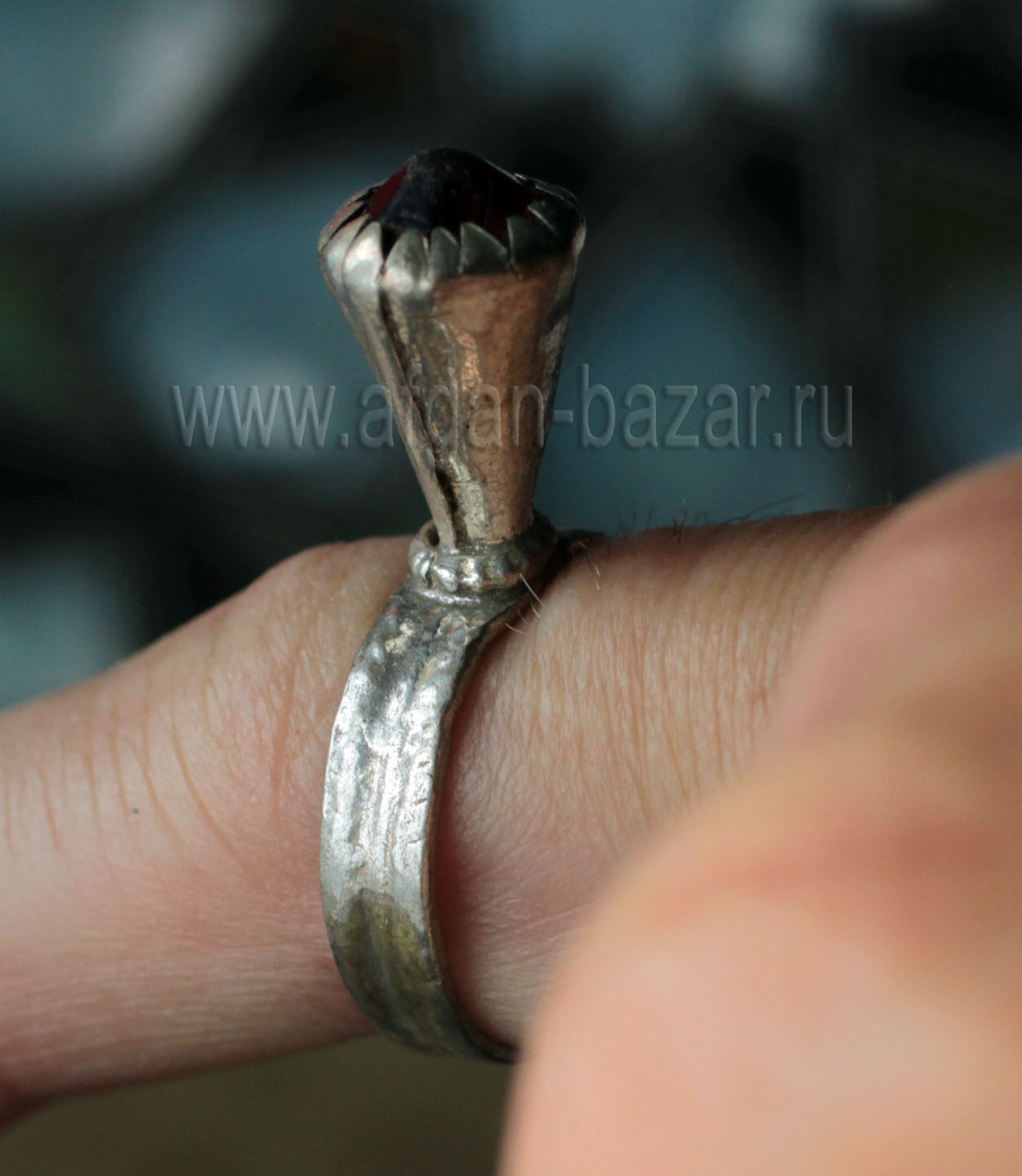 Традиционное мультанское кольцо с холодной эмалью. Пакистан, Мультан, вторая половина 20 в. Установленный размер - 16,5+ (кольцо незамкнутое, но довольно тугое).