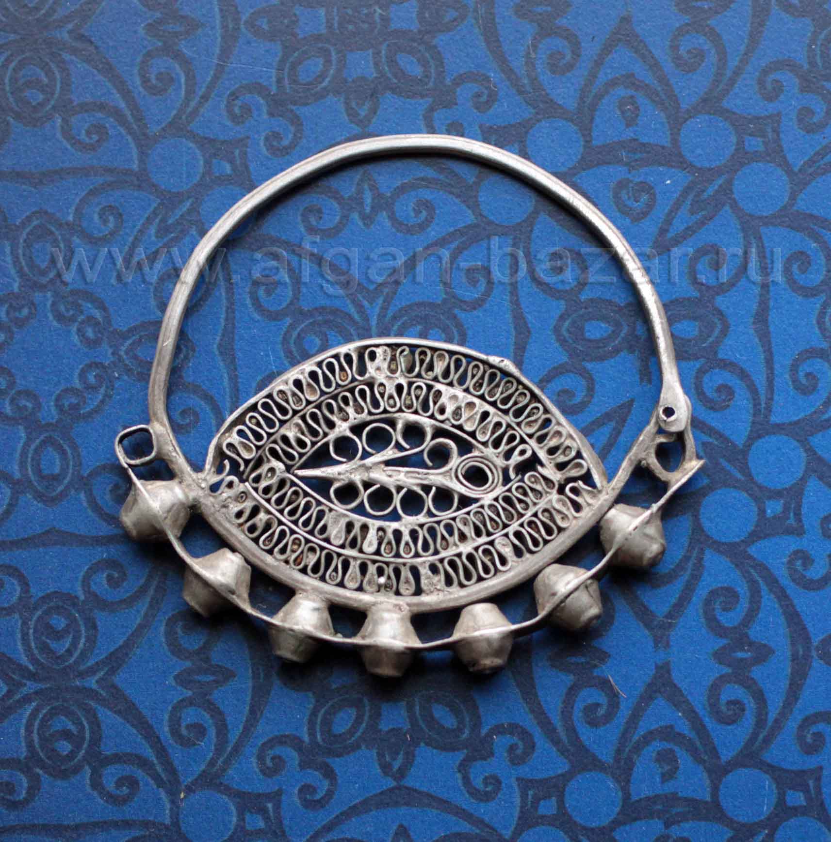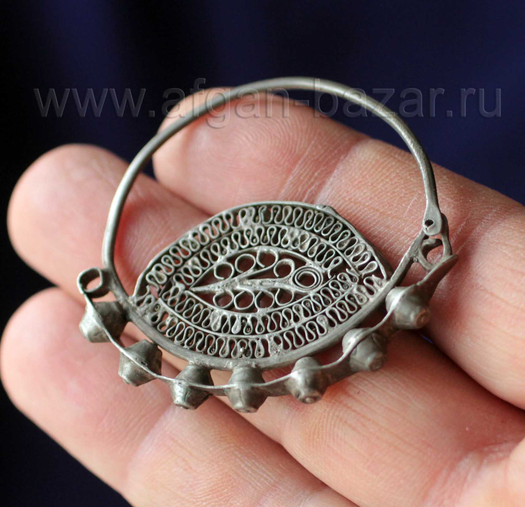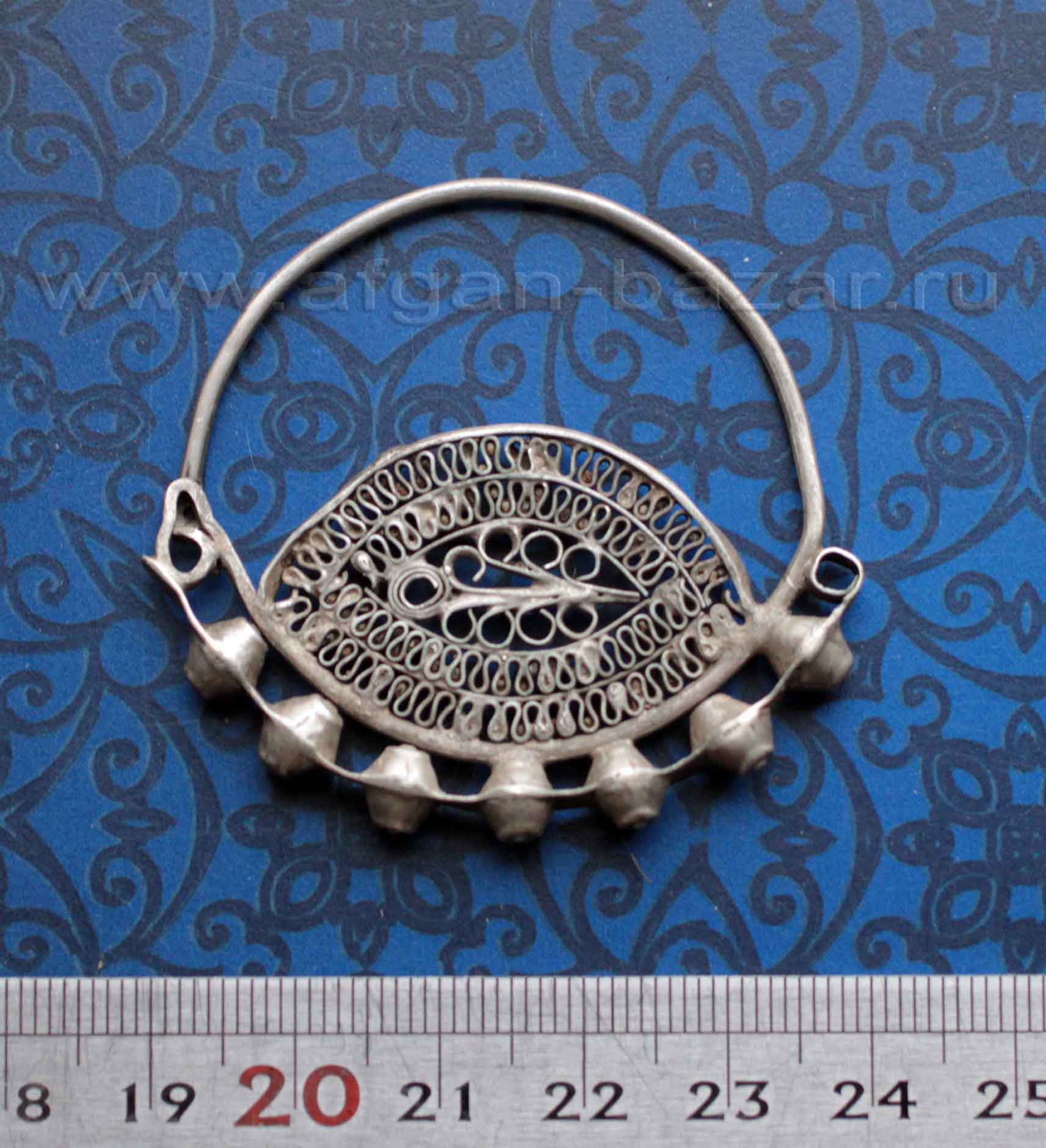 Туркменские украшения, Украшения, шкатулки/коробочки, Афганистан и Средняя Азия, дерево/кость/раковины, аксессуары, Туркменские украшения, Аксессуары, посуда, шкатулки и коробочкиСреднеазиатская серьга для носа - "исирга", "арабек". Северный Афганистан, туркмены, 20 век.