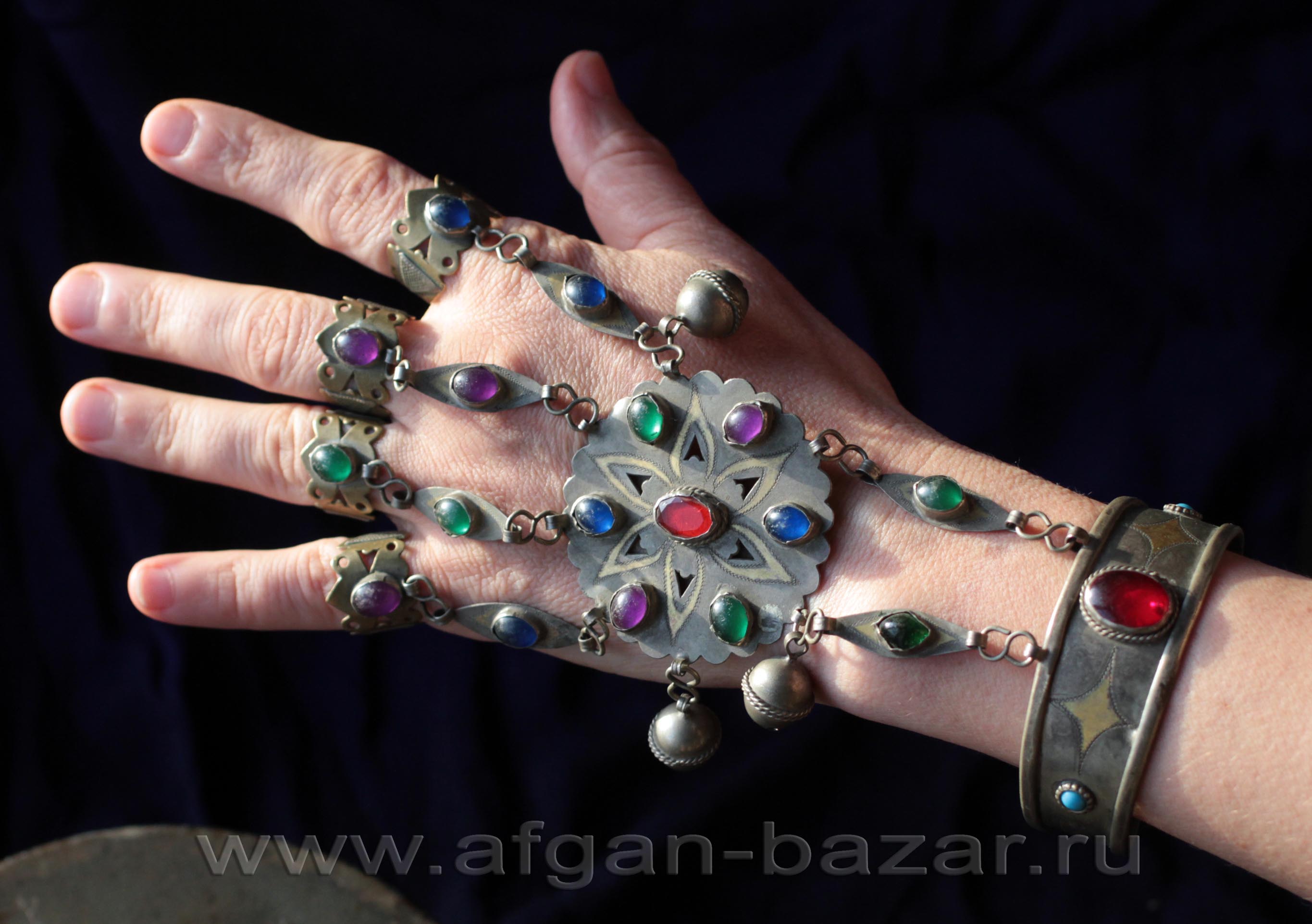 Туркменские украшения, Украшения, этнические/винтажные, серебро, афганские браслеты, браслеты с кольцами, вставки - стекло/керамика, Афганистан и Средняя Азия, Туркменские украшения