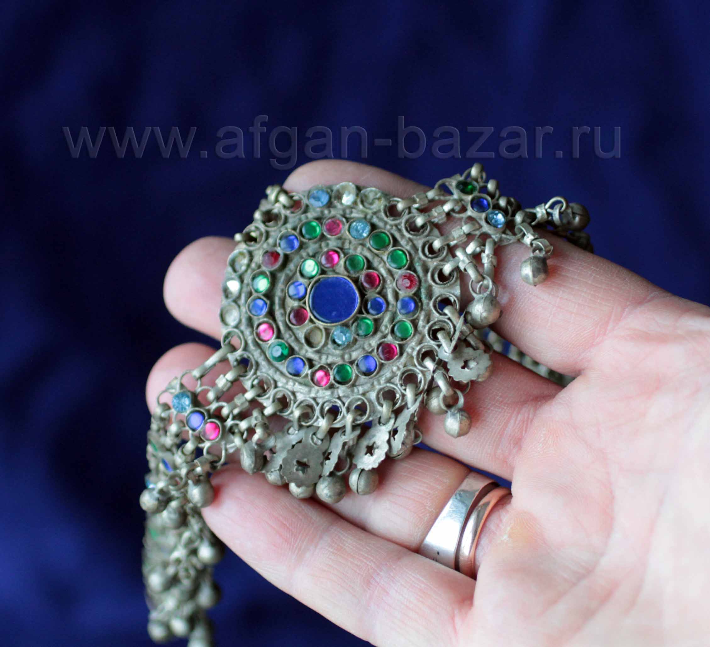 Туркменские украшения, Украшения, этнические/винтажные, серебро, серьги, вставки - стекло/керамика, Для носа, Афганистан и Средняя Азия, украшения для волос и головы, Туркменские украшенияЗаколка для волос - племенные украшения Кучи (Tribal Kuchi Jewelry) Афганистан или Пакистан, 20 в.