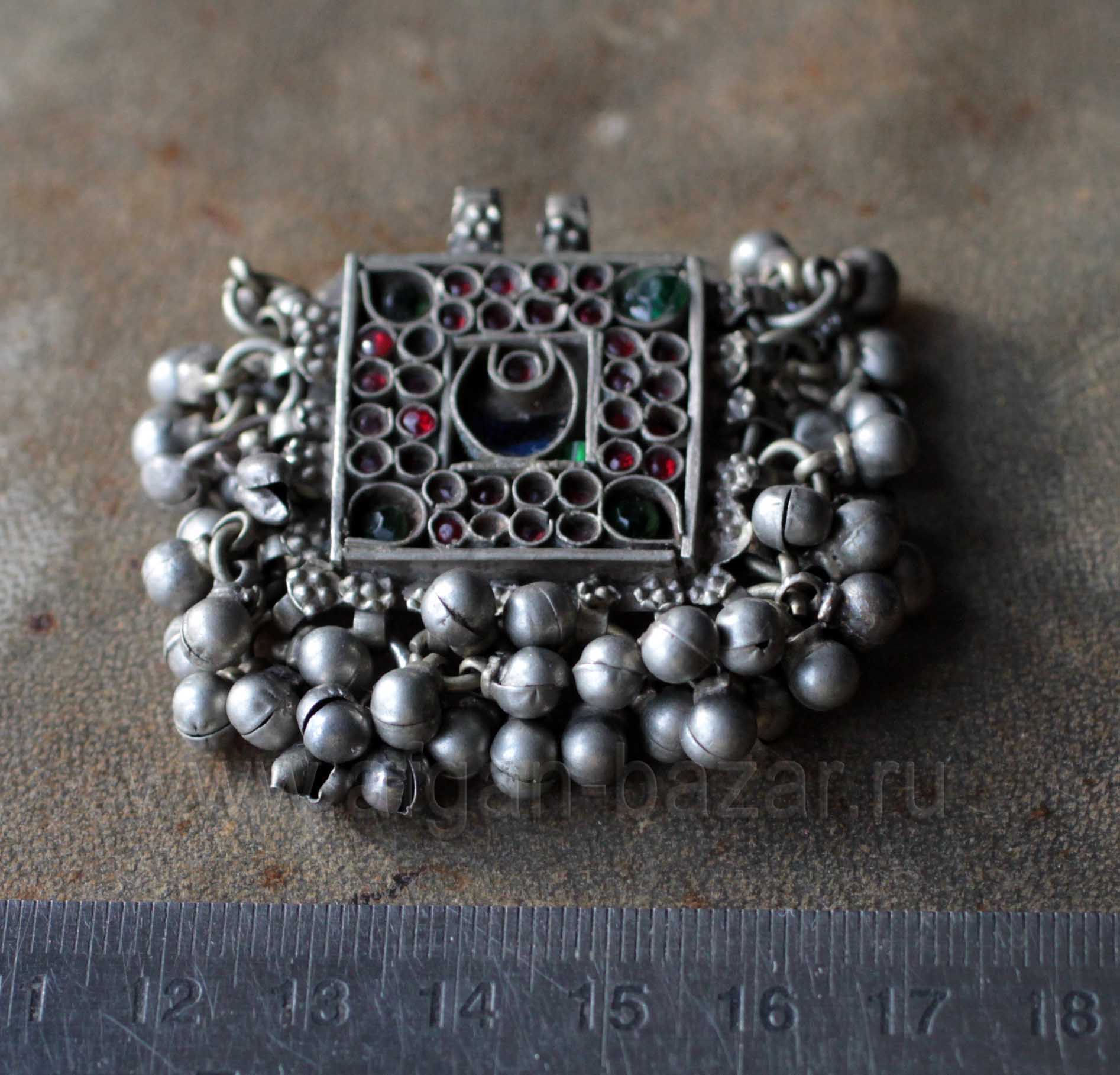Афганистан/Пакистан/Средняя Азия, Украшения, этнические/винтажные, налобные украшения, Афганистан и Средняя Азия, украшения для волос и головы, с цветными элементами (стекло, пластик, бакелит), Племенные украшения КучиАфганская подвеска-амулет, деталь наголовного украшения. Афганистан или Пакистан, племенные украшения Кучи, 20 в.