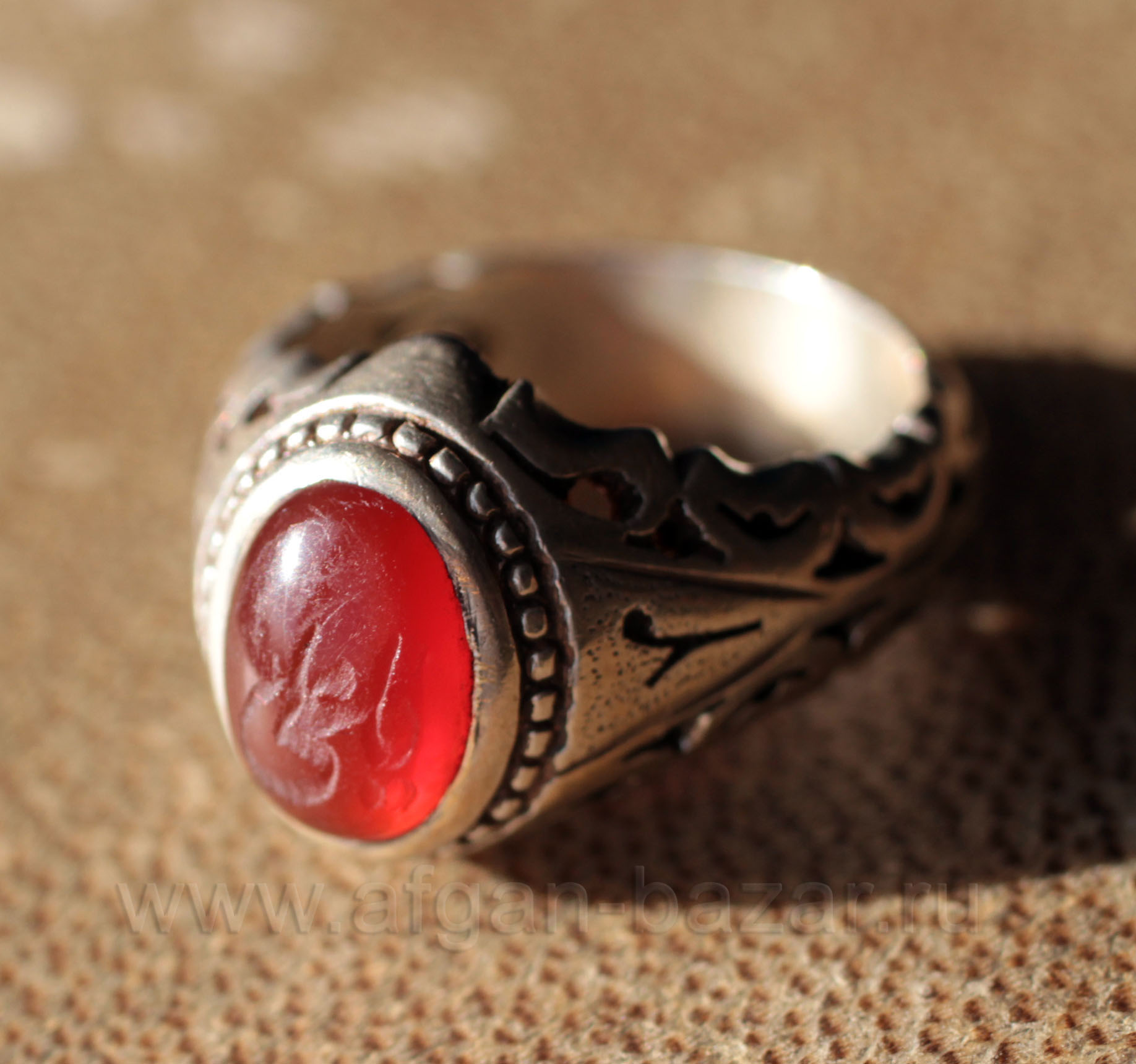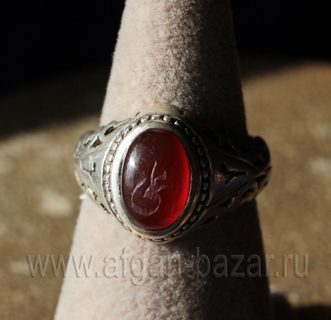 Винтажный иранский мужской перстень с сердоликом и каллиграфической надписью.