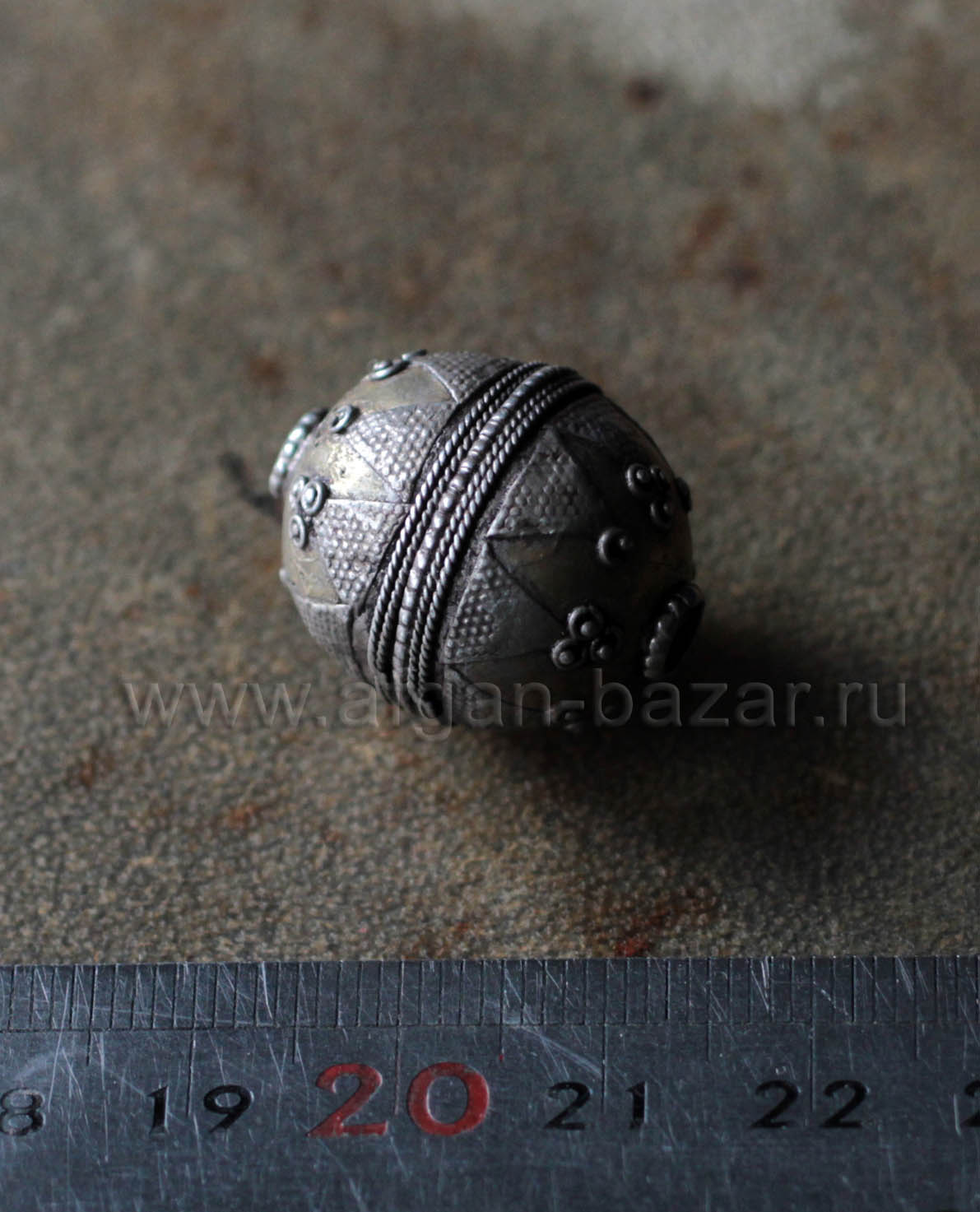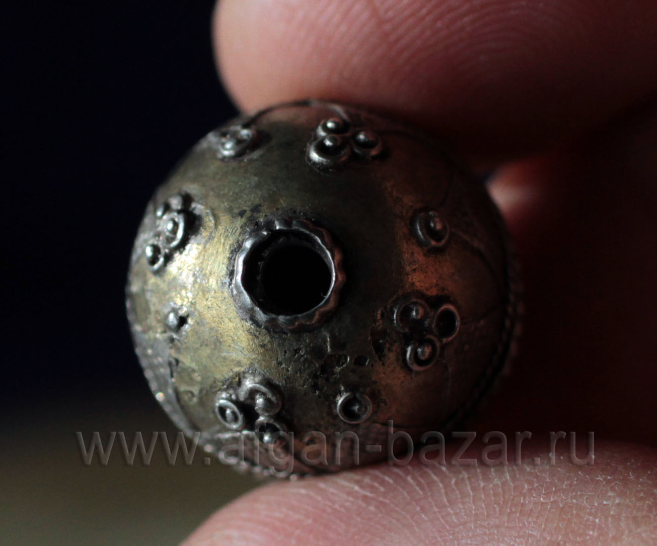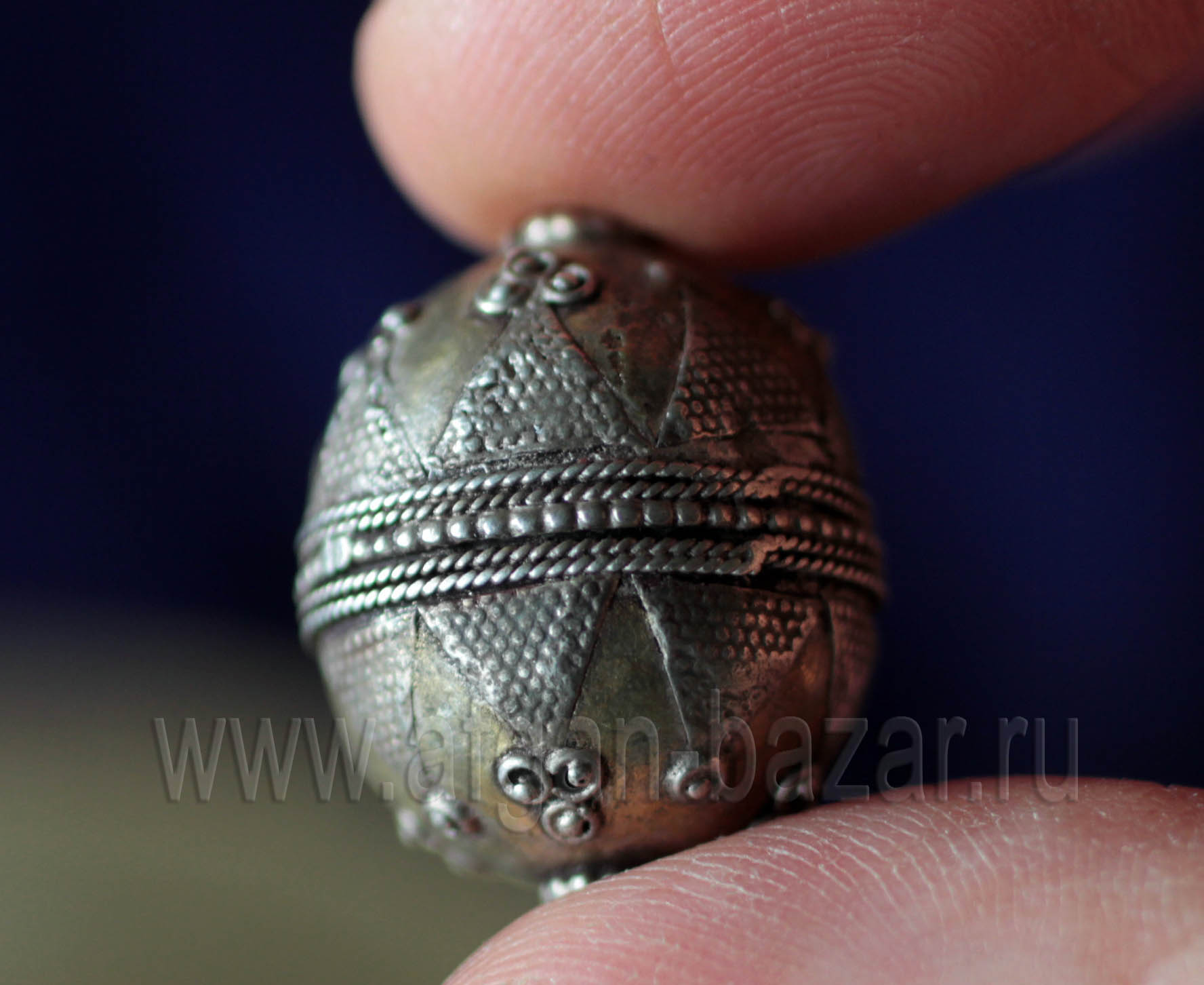 Винтажная серебряная бусина в казахском стиле. Казахстан или Северный Афганистан, 19-20 вв.