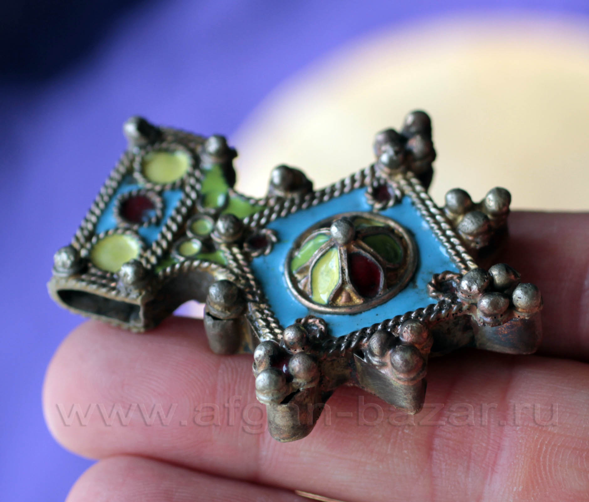 Бусина-коннектор марокканская крупная с эмалью - Traditional Moroccan Berber Hot Enamel ethnic Tribal Bead "Tagamouth"