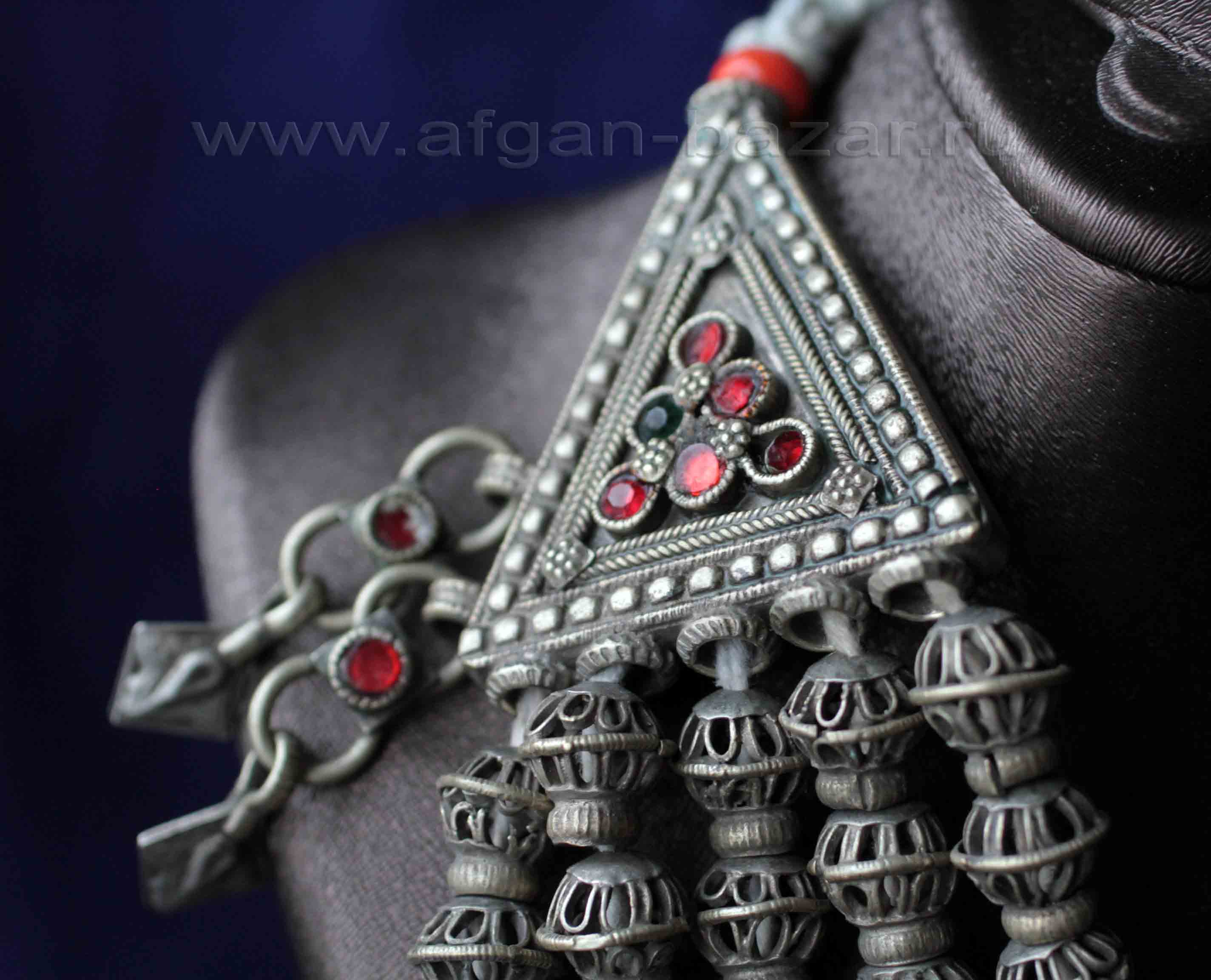 Афганистан/Пакистан/Средняя Азия, Виртуальный музей декоративно-прикладного искусства Востока, металл, Украшения, этнические/винтажные, Центральная и Южная Азия, вставки - стекло/керамика, Афганистан и Средняя Азия, колье, бусы, гривны, Колье/чокеры/гривны, Племенные украшения КучиКолье с подвеской - элементом старого афганского украшения. Автор - Александр Емельянов