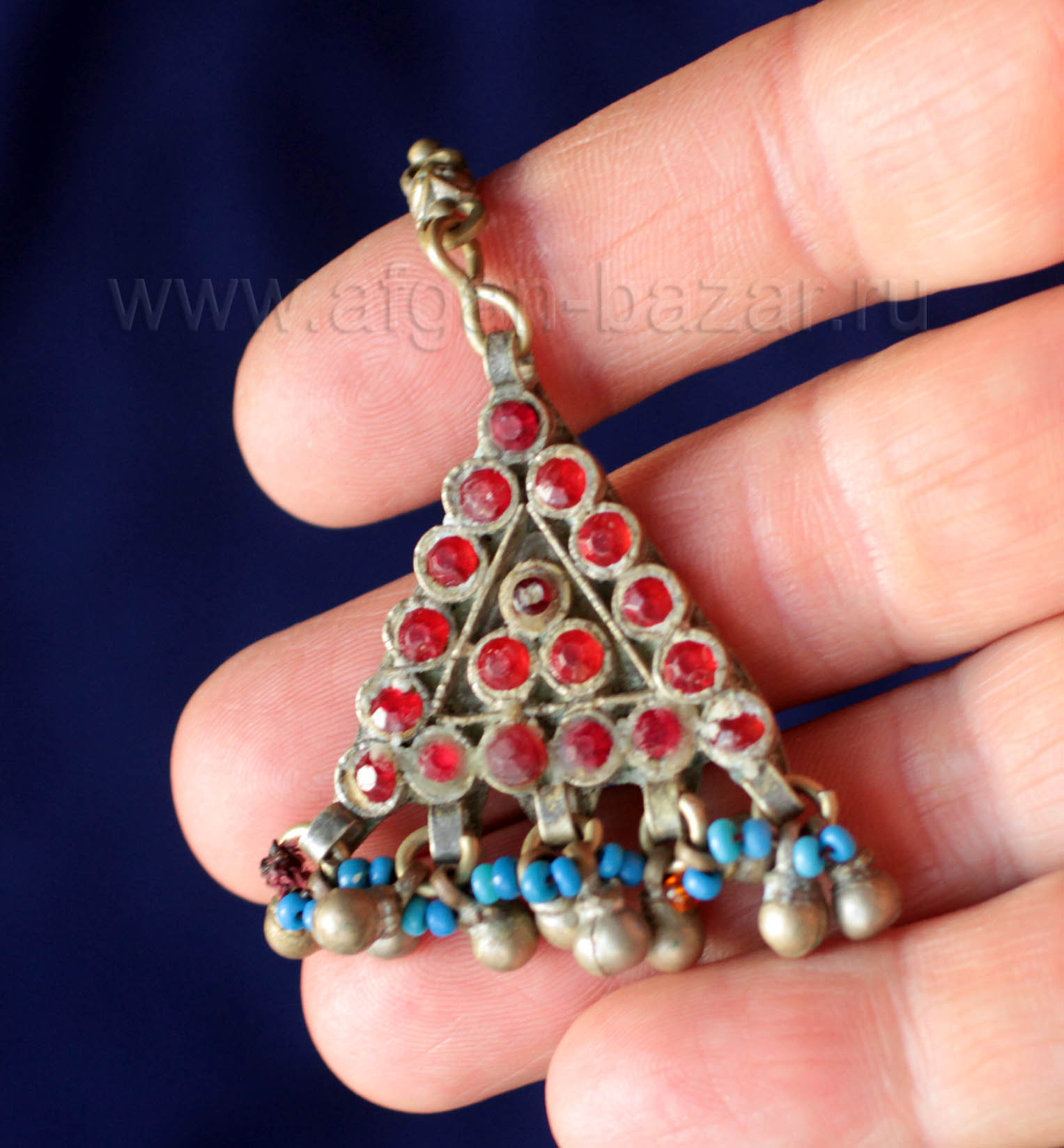 Афганистан/Пакистан/Средняя Азия, с подвесами на цепях, кнопки и коннекторы без подвесов, Фурнитура, вставки - стекло/керамика, кучи фурнитура, кулоны, подвески, Афганистан и Средняя Азия, с цветными элементами (стекло, пластик, бакелит), Племенные украшения Кучи, Этническая фурнитура для расшивки костюмовКрупная монета-подвеска (Tribal Kuchi Jewelry)