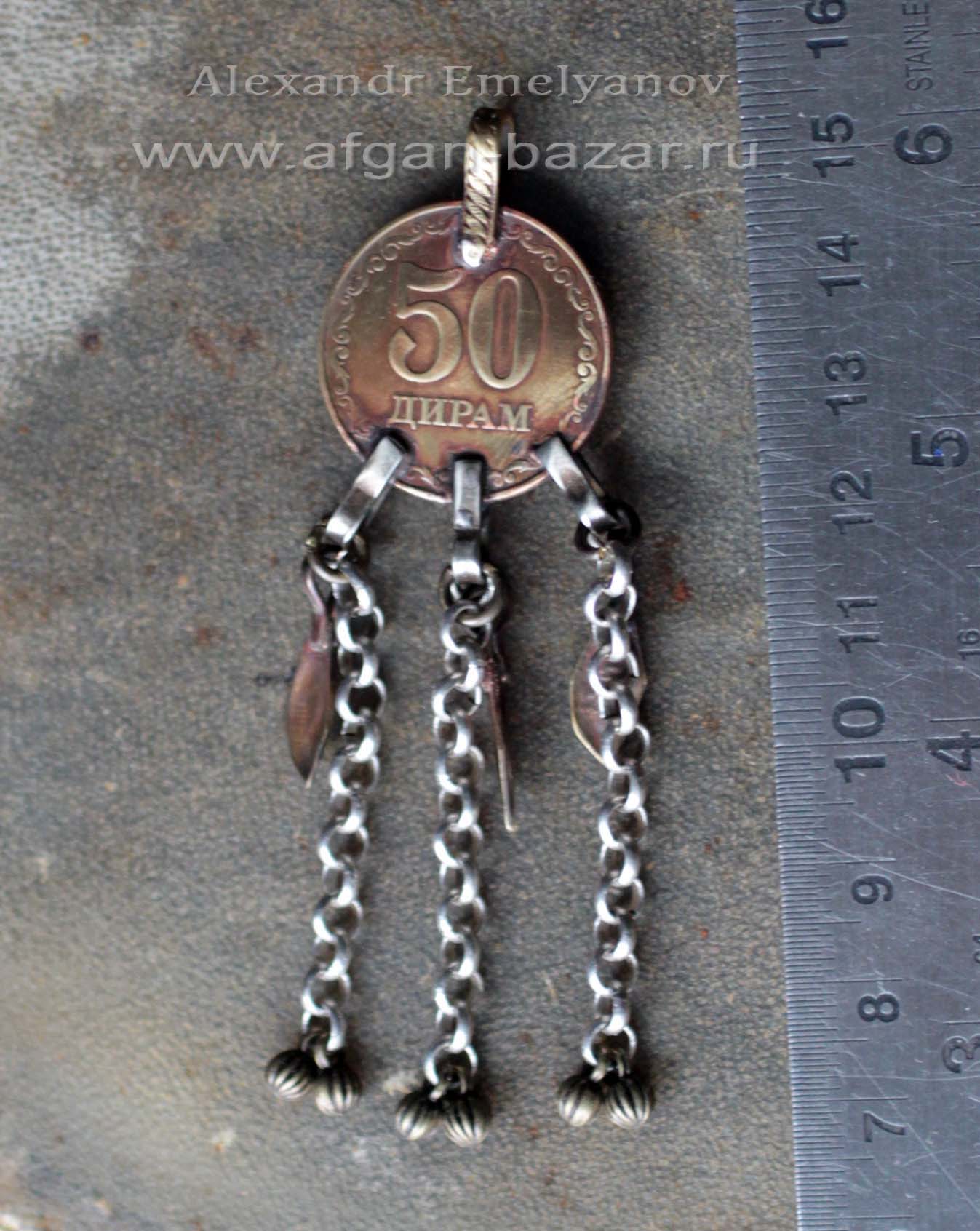 Афганистан/Пакистан/Средняя Азия, металл, с подвесами на цепях, этно фурнитура (подвески, коннекторы, декор. элементы) афганистан пакистан марокко, Фурнитура, кучи фурнитура, вставки - эмаль/мастика, кулоны, подвески, Афганистан и Средняя Азия, Племенные украшения Кучи, Этническая фурнитура для расшивки костюмовПодвеска из монеты в афганском стиле