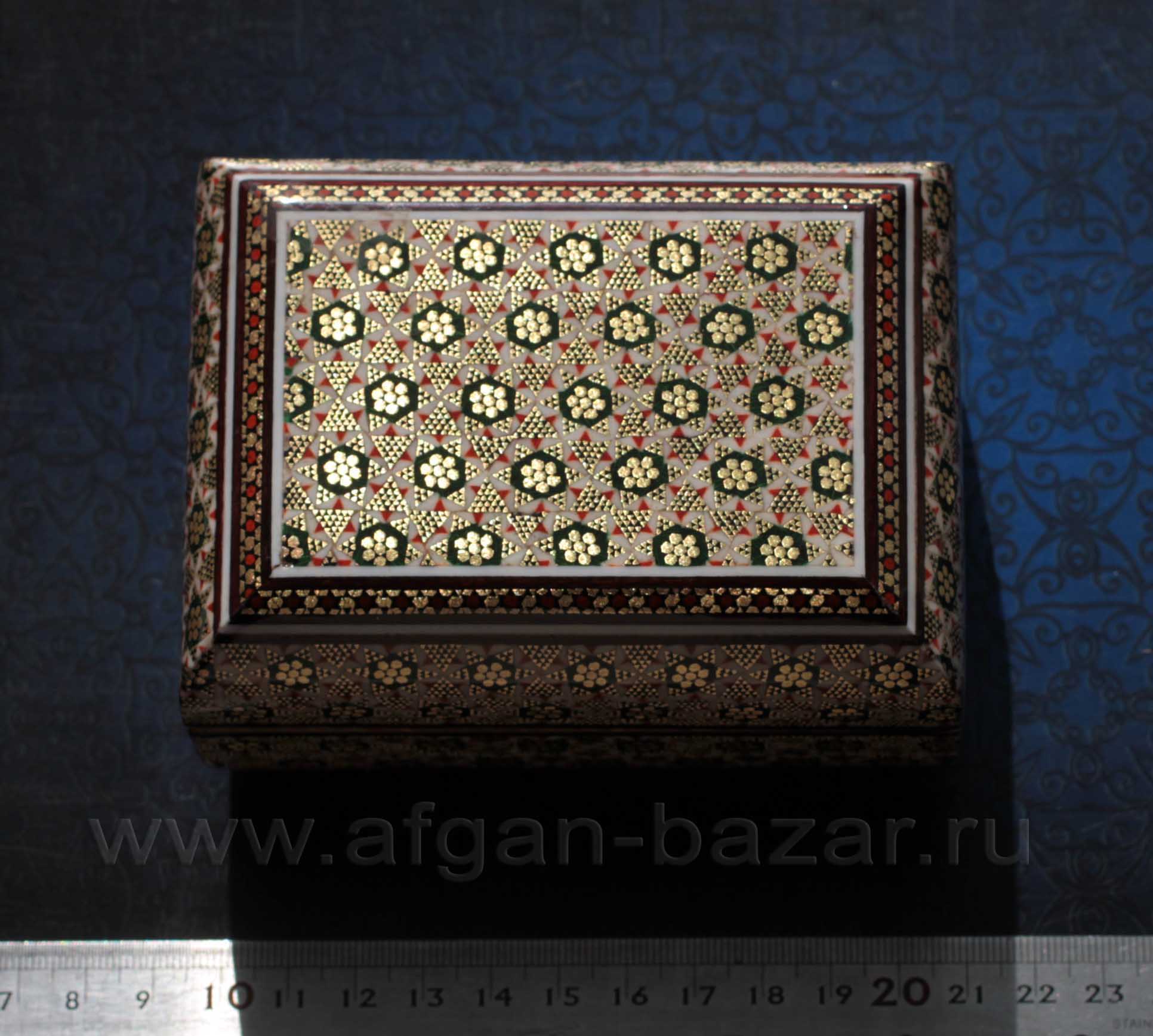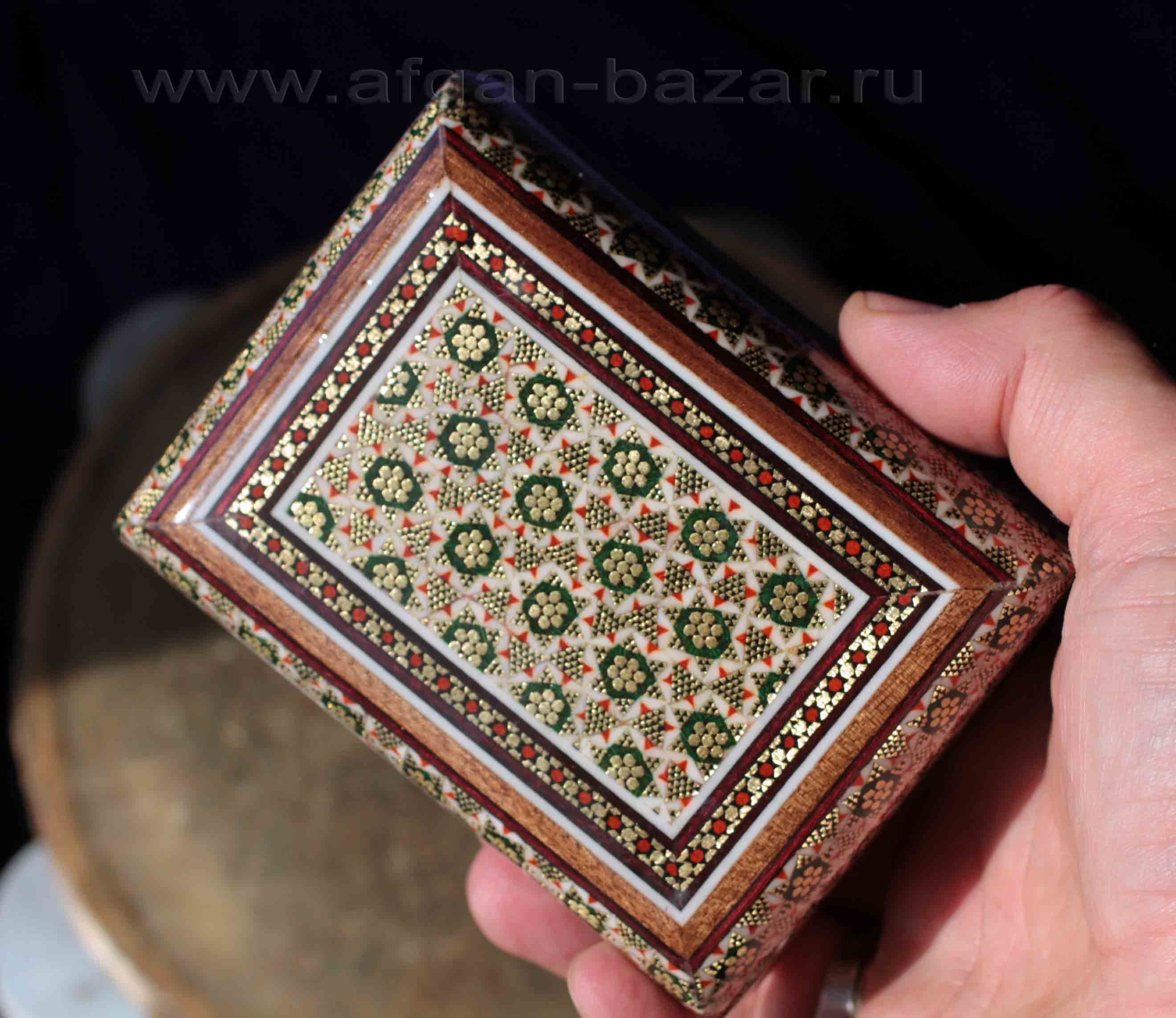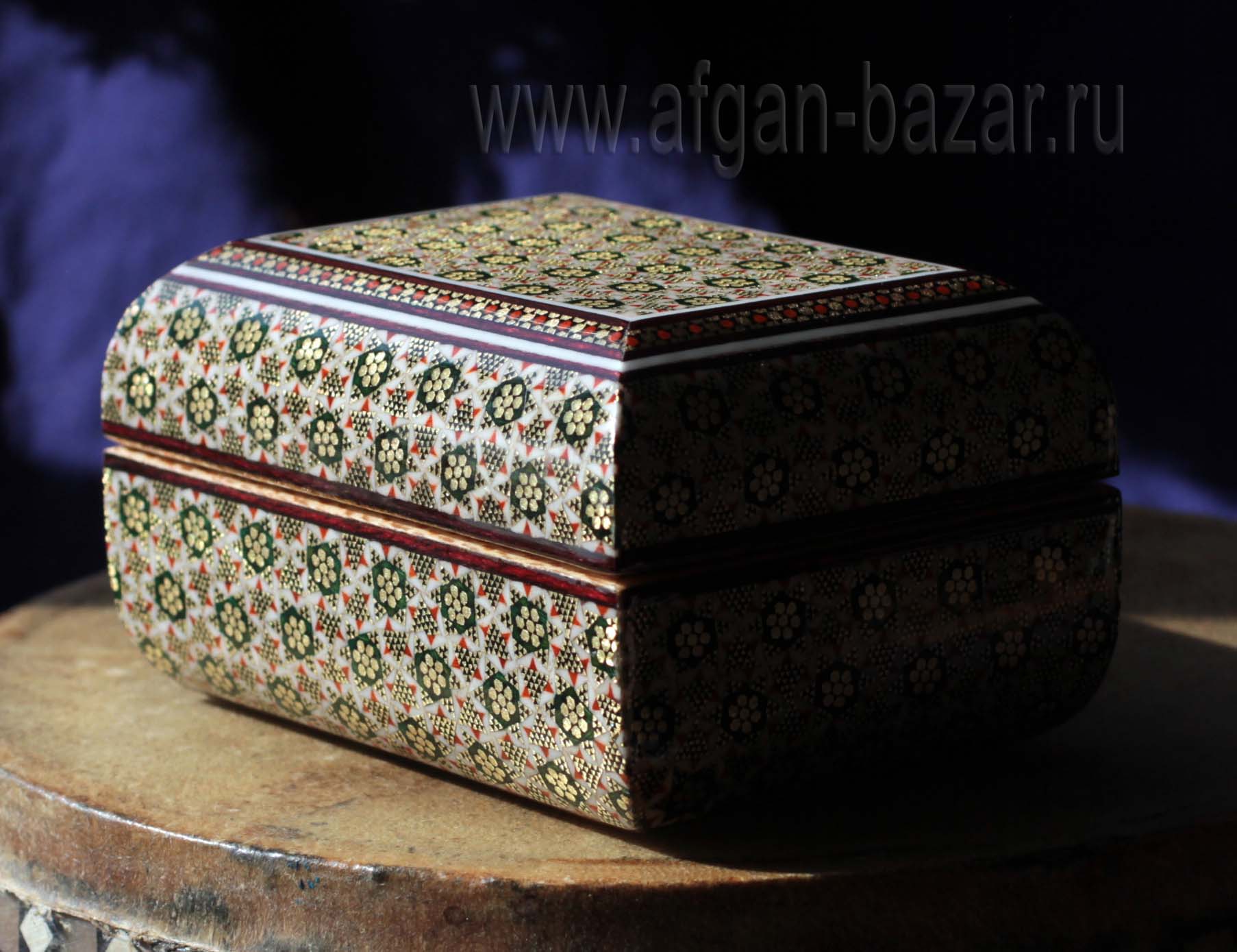 Украшения, посуда, Афганистан и Средняя Азия, горячая эмаль, Иран, аксессуары, Иран, Аксессуары, посуда, шкатулки и коробочкиДеревянная шкатулка с инкрустацией "Хатам". Иран, Исфахан, современная работа