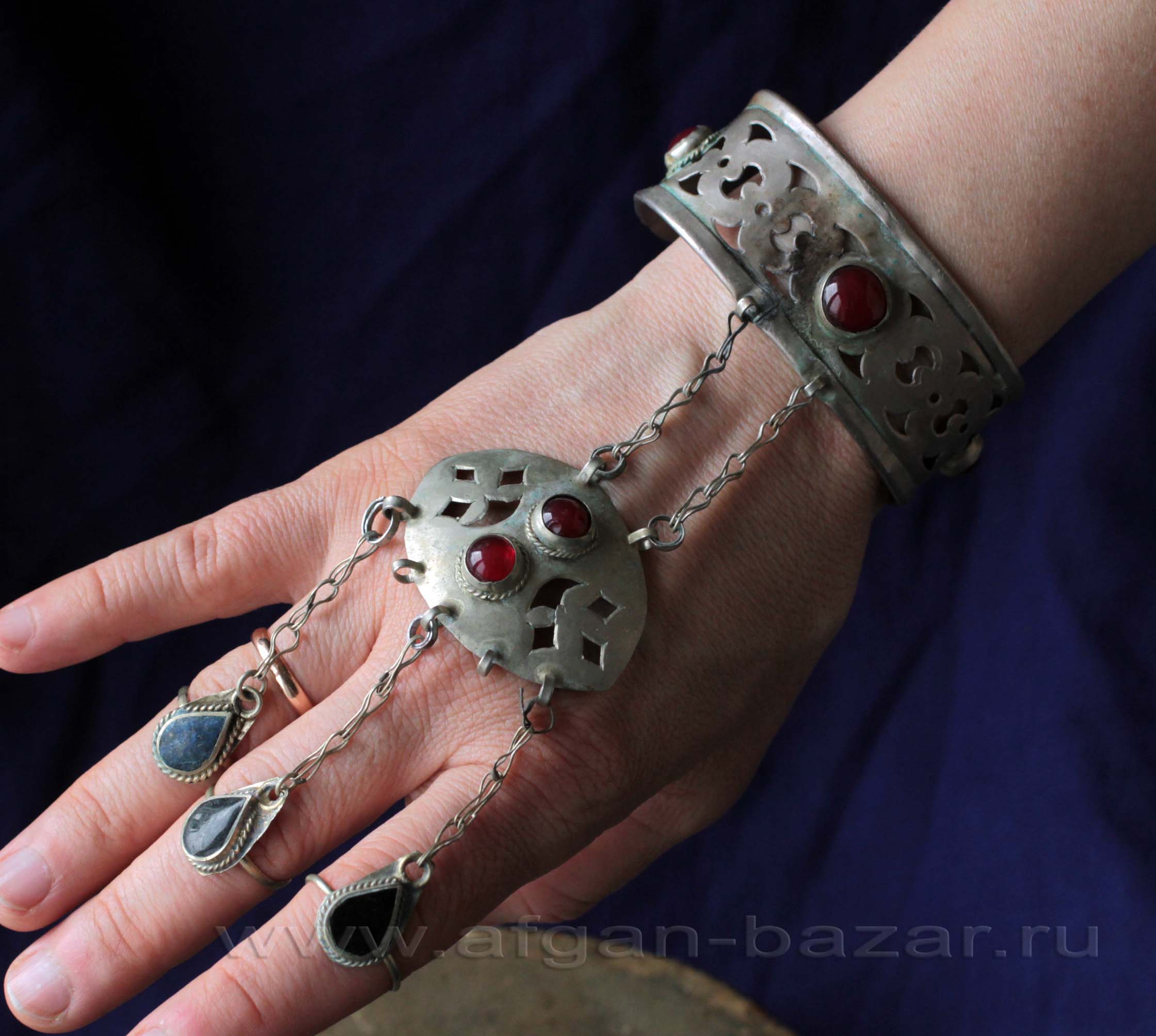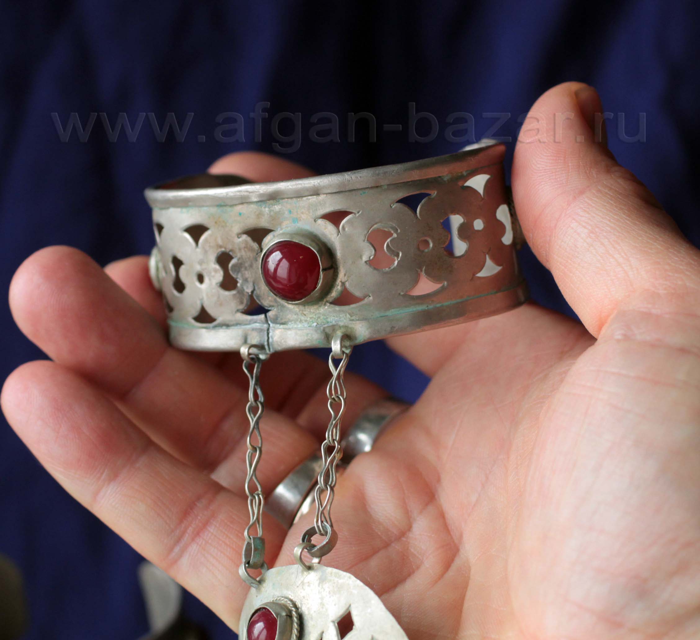 вставки - натуральный камень, металл, Товар недели, Туркменские украшения, Украшения, этнические/винтажные, афганские браслеты, браслеты с кольцами, Афганистан и Средняя Азия, Туркменские украшения