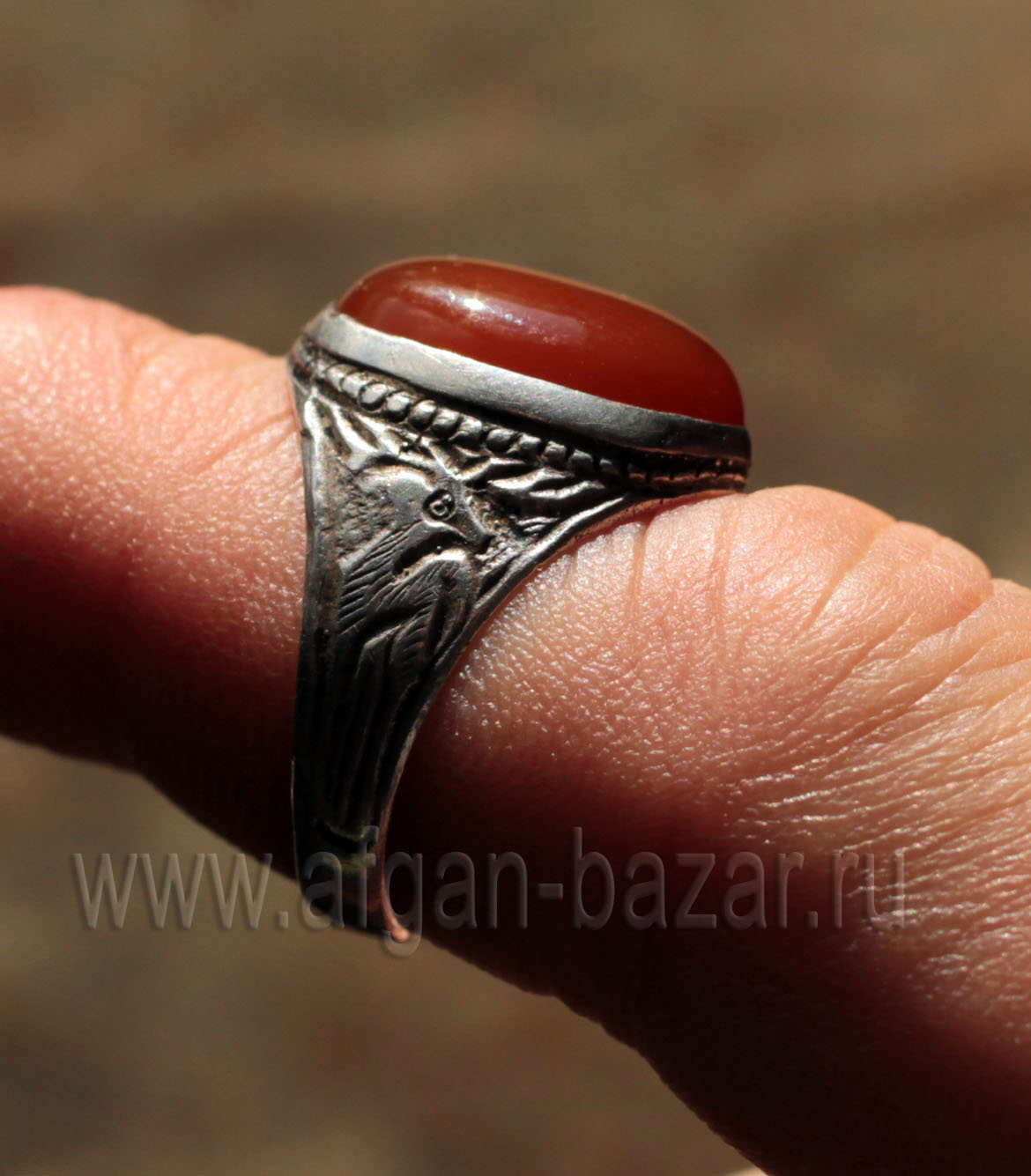 Винтажный иранский мужской перстень с сердоликом - Размер - 21