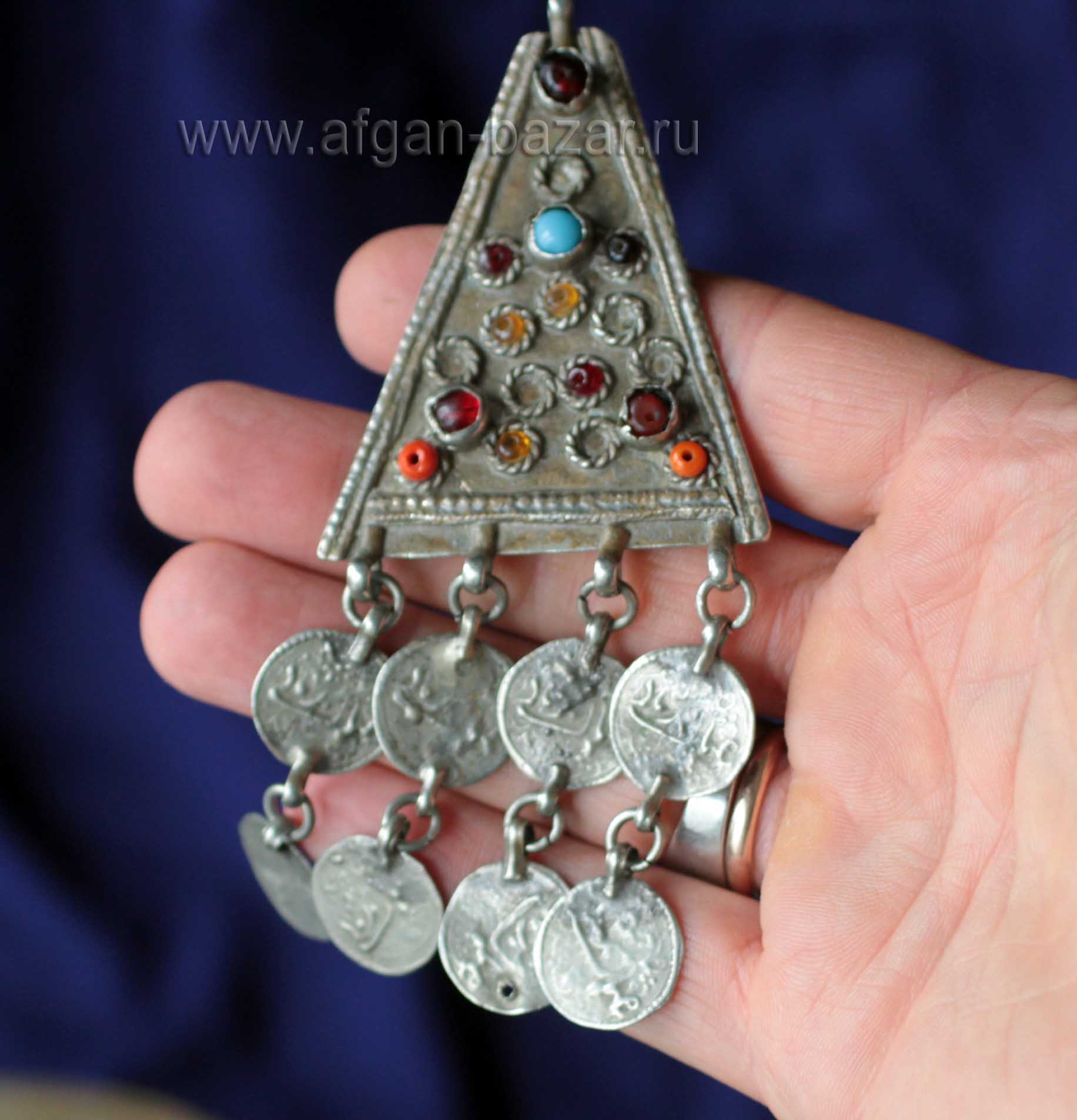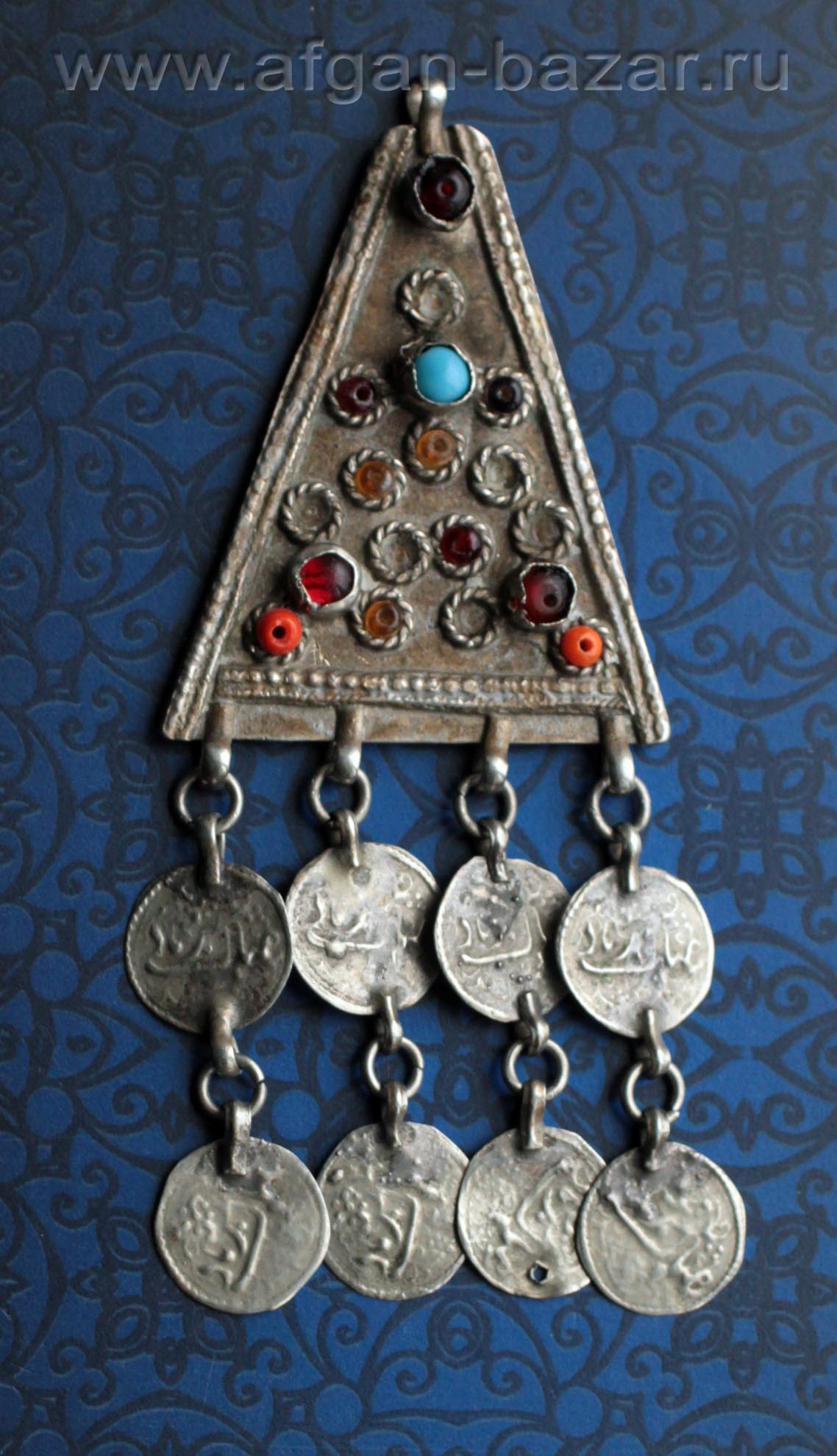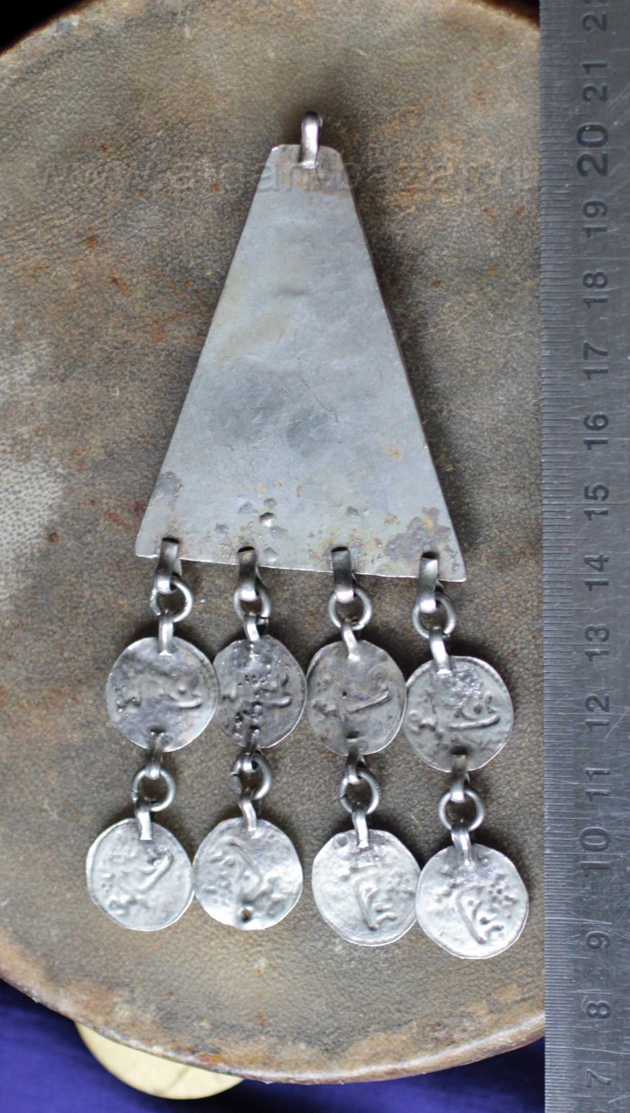 этнические/винтажные, этно фурнитура (подвески, коннекторы, декор. элементы) афганистан пакистан марокко, серебро, Фурнитура, вставки - стекло/керамика, Казахские/киргизские украшения, коннекторы, кулоны, подвески, Афганистан и Средняя Азия, Украшения в казахском стиле, Этническая фурнитура для расшивки костюмовПодвеска-амулет, часть колье или пояса с подвесками, имитирующими монеты. Афганистан, таджики или хазарейцы, середина 20 в.