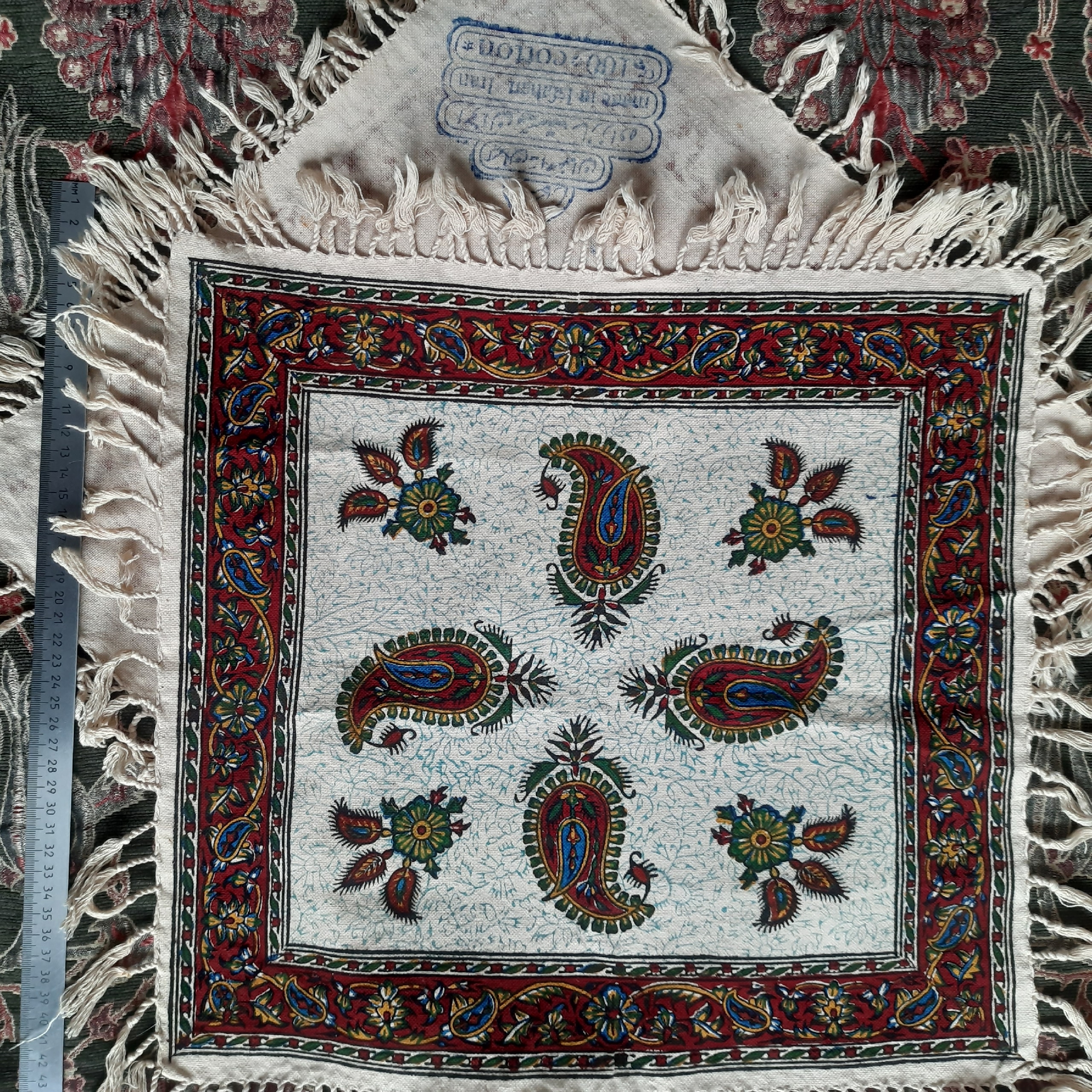 Декоративная салфетка с традиционным иранским набойным орнаментом "Каламкар". Иран, современная работа