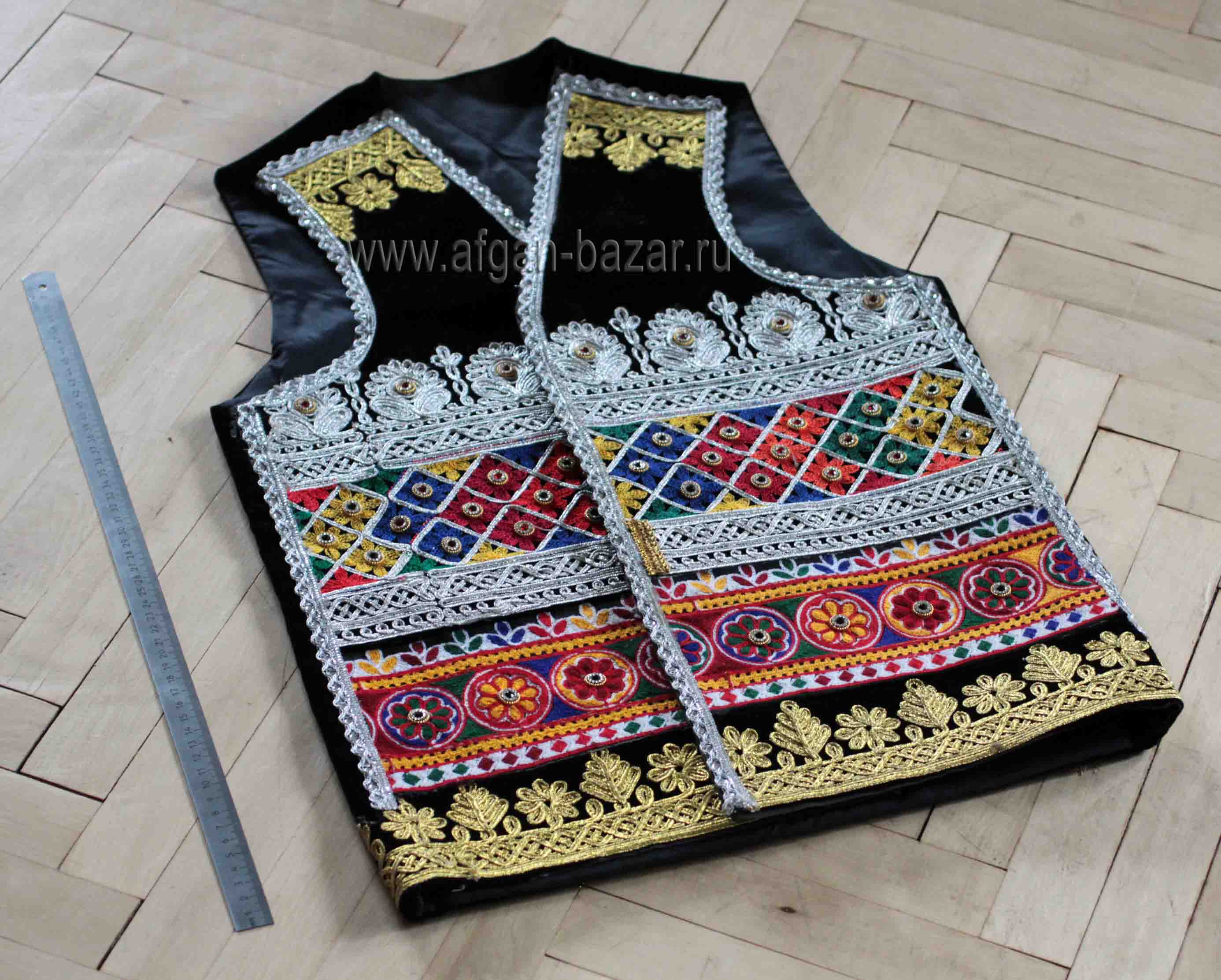 Афганистан/Пакистан/Средняя Азия, Одежда, головные уборы, Украшения, Афганистан и Средняя Азия, текстиль, кожа, шерсть, аксессуары, Одежда, головные уборы, ковры, тканиАфганская бархатная жилетка Маскат, расшитая люстром и зеркальцами-шиша. Афганистан, Газни, современная работа.