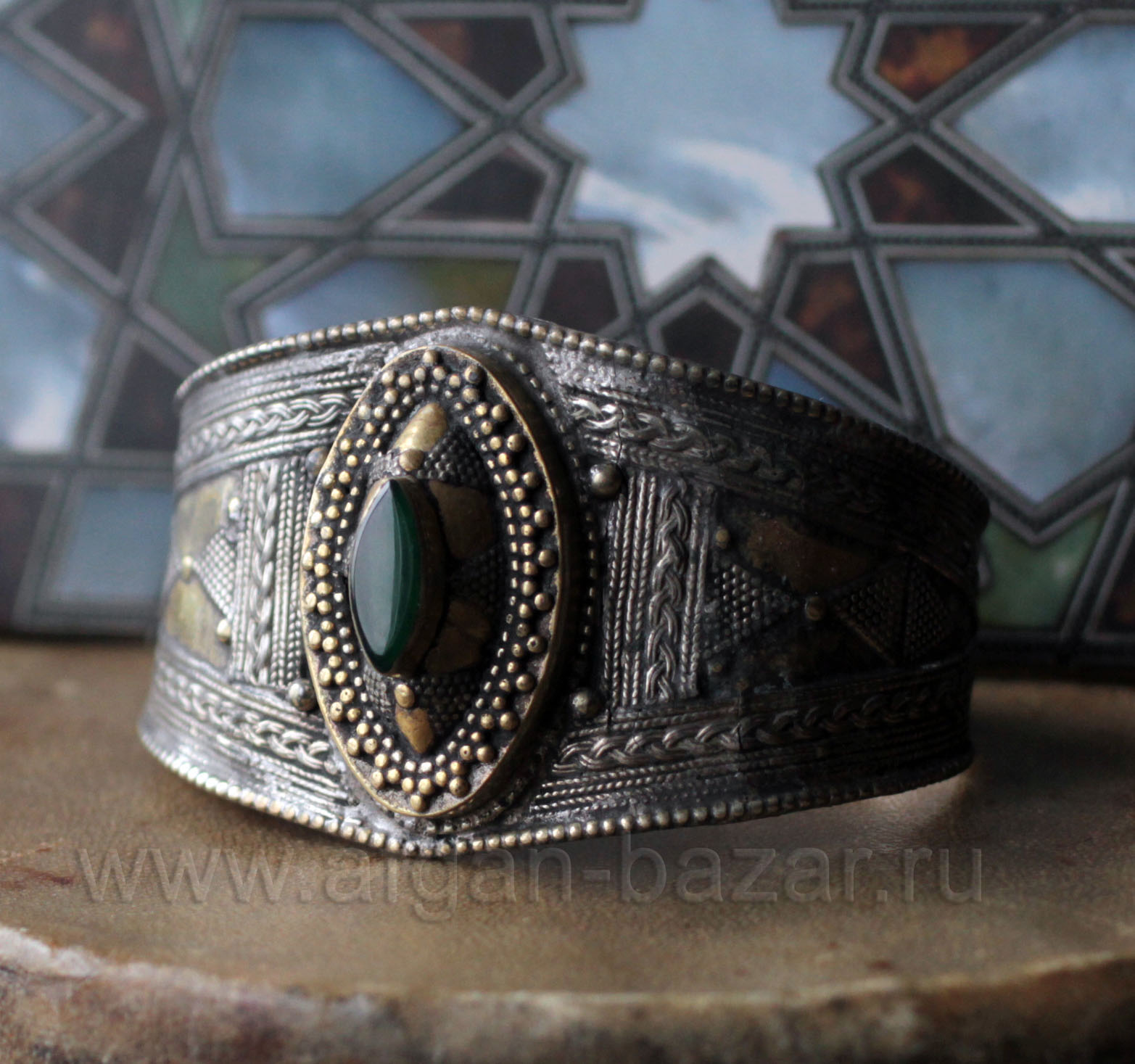 Виртуальный музей декоративно-прикладного искусства Востока, Украшения, этнические/винтажные, индийские браслеты, серебро, Центральная и Южная Азия, афганские браслеты, Афганистан и Средняя Азия, Браслеты, Индия/Банджара, ИндияБраслет из природного жадеита. Пакистан, современная работа