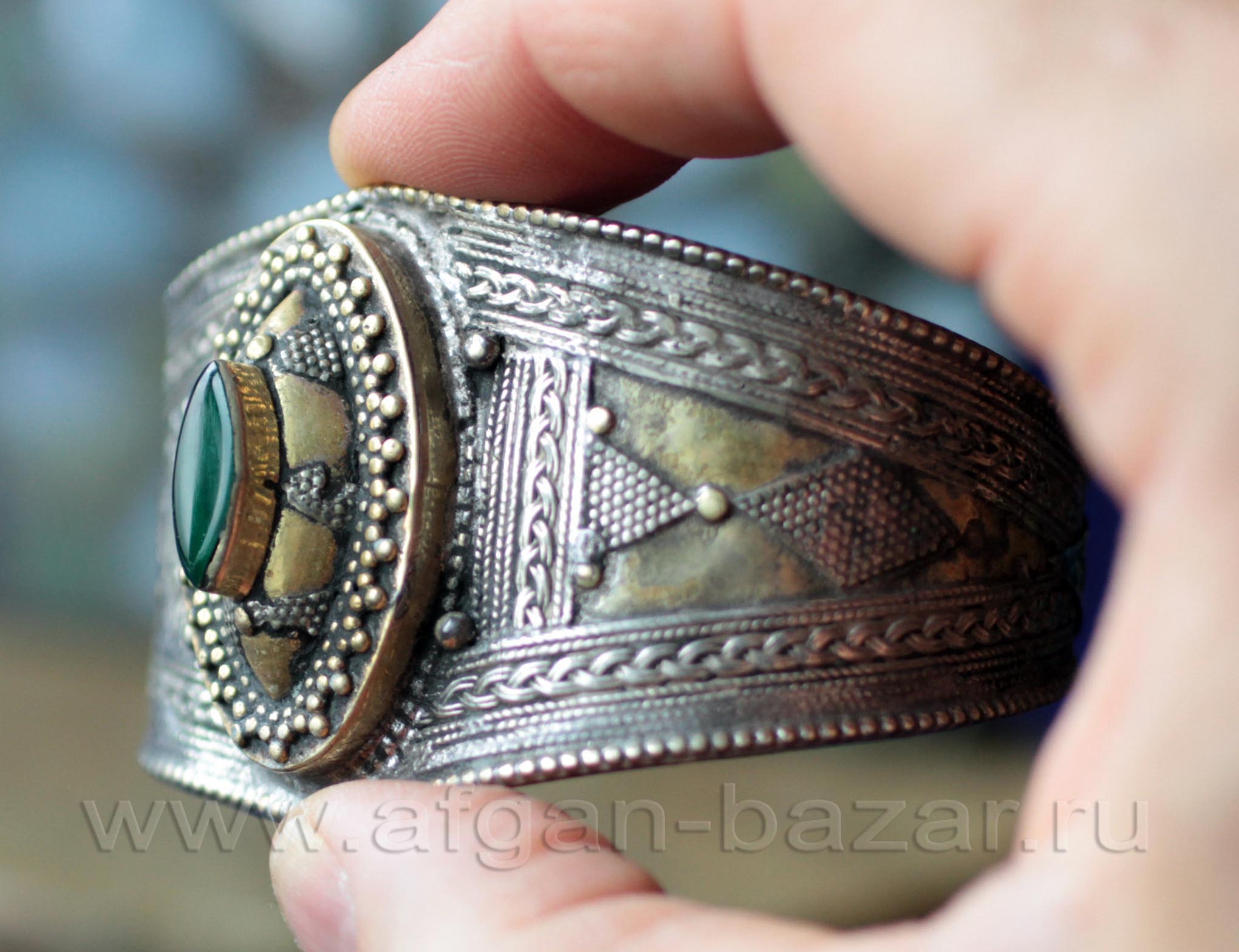 Афганистан/Пакистан/Средняя Азия, металл, Украшения, этнические/винтажные, афганские браслеты, Афганистан и Средняя Азия, Браслеты, Племенные украшения КучиВинтажный афганский браслет с зеленым камнем. Афганистан, 20-21 в.