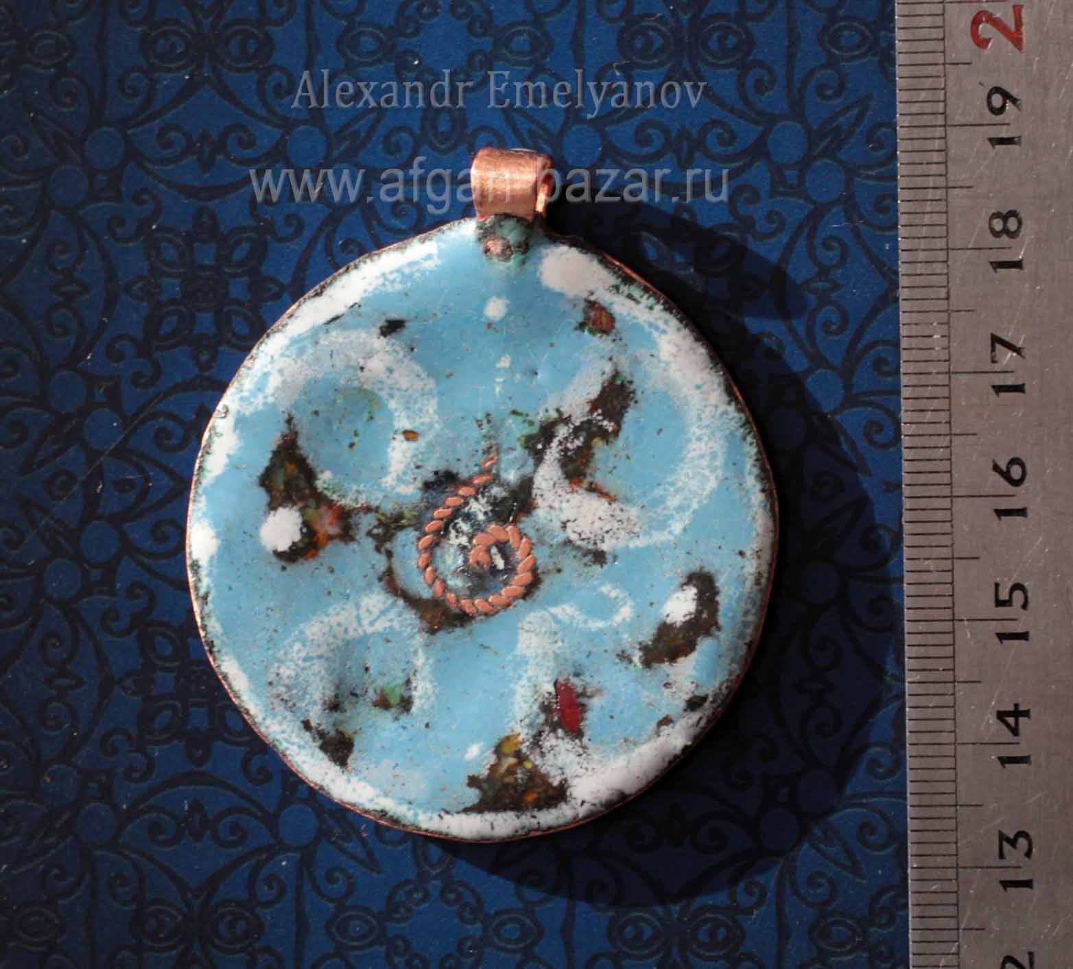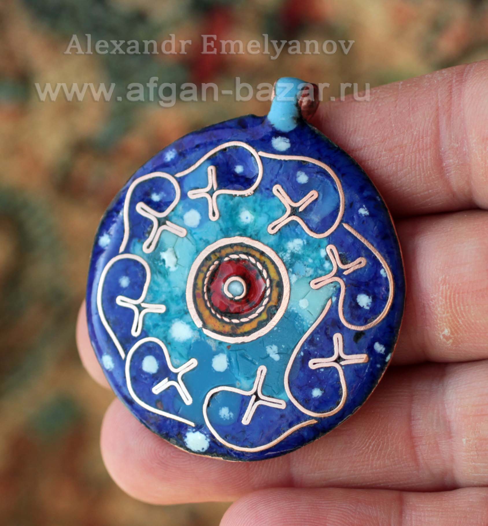 Кулон с суфийской символикой "Ар-Рахман". Медь, горячая перегородчатая эмаль. Автор - Александр Емельянов