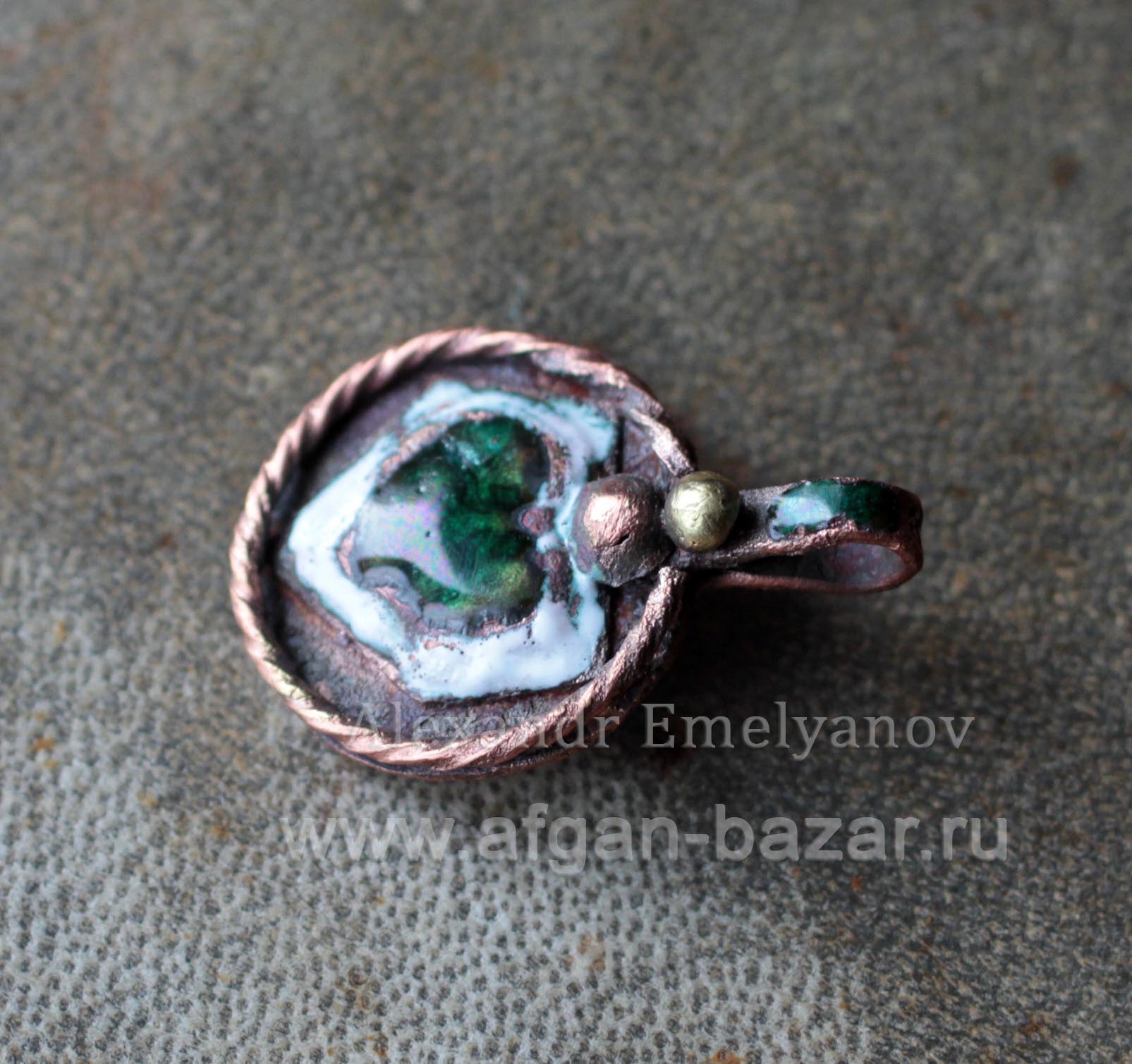Александр Емельянов. Кулон "Тайный сад". Медь, штамп, скручивание, горячая эмаль по рельефу