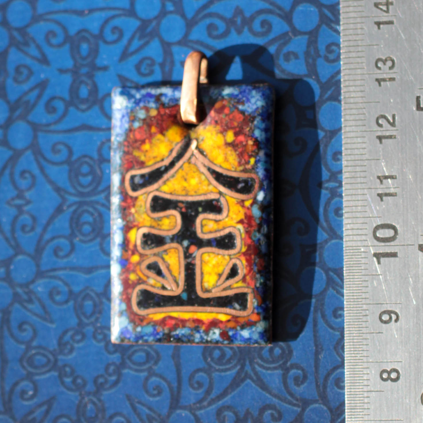 Кулон в китайском стиле с иероглифом Золото, металл. Автор - Емельянова Елена. Медь, горячая перегородчатая эмаль