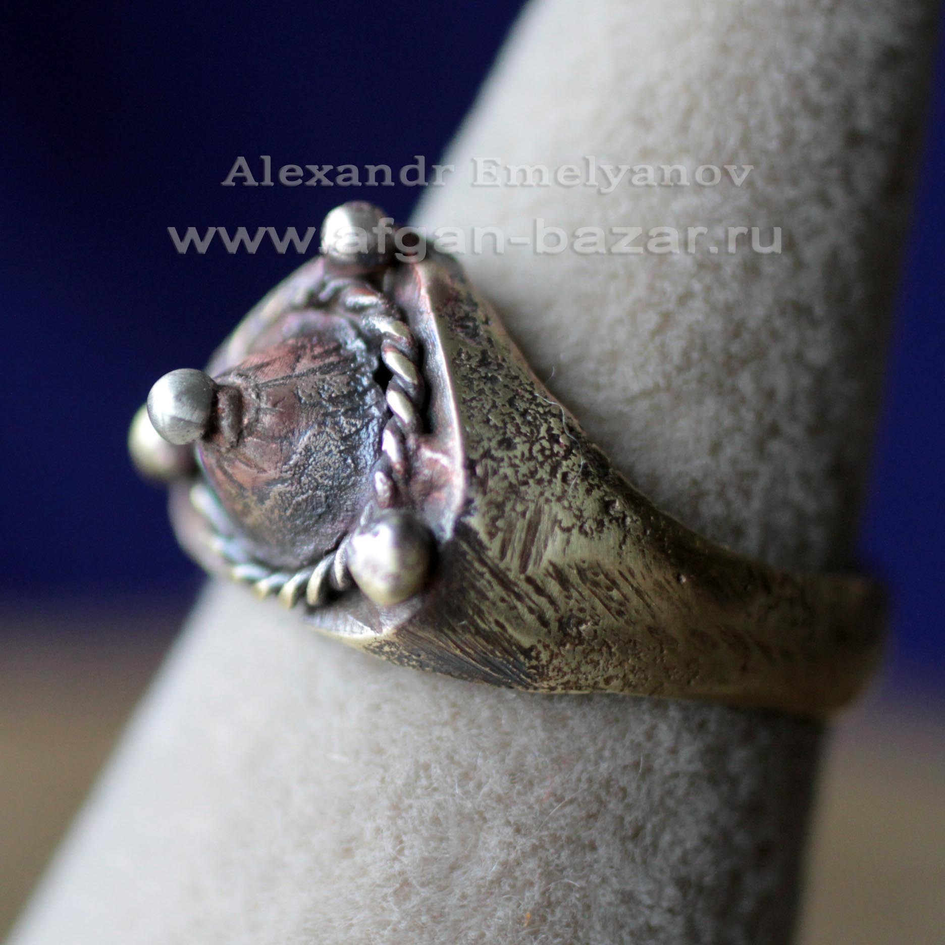 Авторские кольца и перстни, кольца, металл, Украшения, Украшения в этническом стиле, вставки - стекло/керамика, индийские кольца, размер 18 - 18,5, Авторские ювелирные украшения в этническом стиле, реконструкция античных и средневековых украшенийСтаринное афганское племенное кольцо