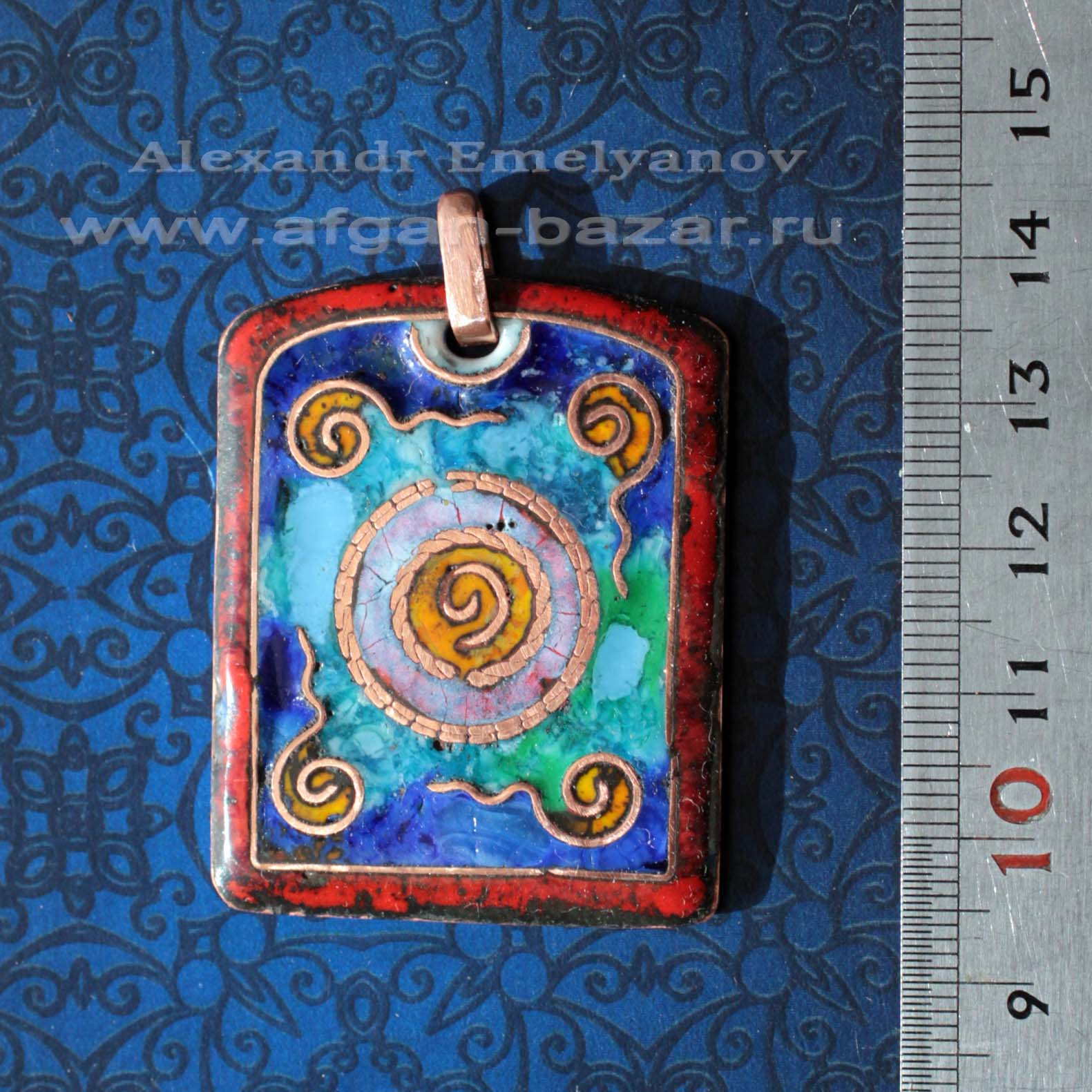 Кулон "Каир". Автор - Александр Емельянов. Медь, пайка, штамп, горячая перегородчатая эмаль, прозрачная эмаль по рельефу