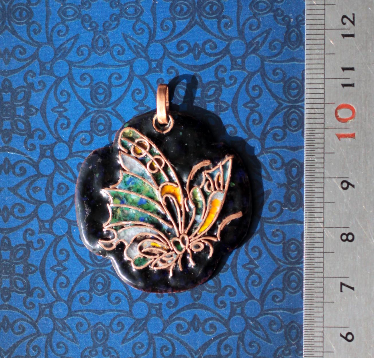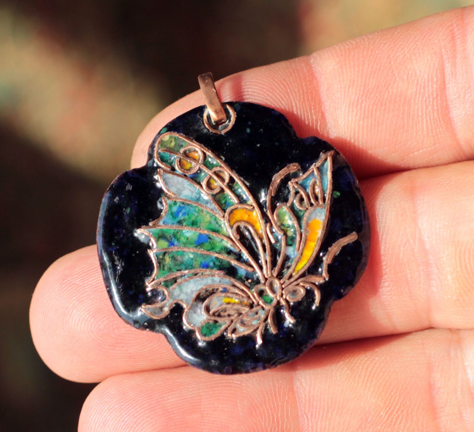 Кулон в китайском стиле с изображением бабочки. Автор - Solus Rex Медь, горячая перегородчатая эмаль