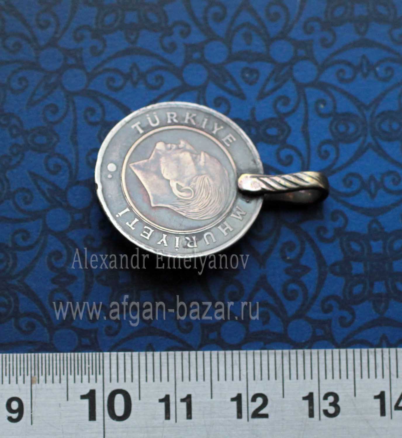 Афганистан/Пакистан/Средняя Азия, Товар недели, Украшения, Фурнитура в этническом стиле, этно фурнитура (подвески, коннекторы, декор. элементы) афганистан пакистан марокко, Авторские колье, гривны и кулоны, вставки - стекло/керамика, Монеты, кулоны, подвески, с цветными элементами (стекло, пластик, бакелит), Авторские ювелирные украшения в этническом стиле, реконструкция античных и средневековых украшений, Фурнитура и материалы, Этническая фурнитура для расшивки костюмовПодвеска из турецкой монеты по мотивам афганских племенных украшений. Автор - Александр Емельянов.