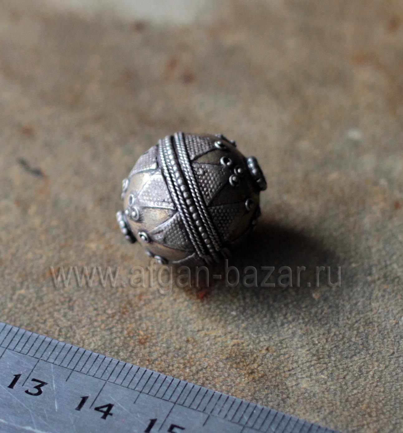 Винтажная серебряная бусина в казахском стиле. Казахстан или Северный Афганистан, 19-20 вв.