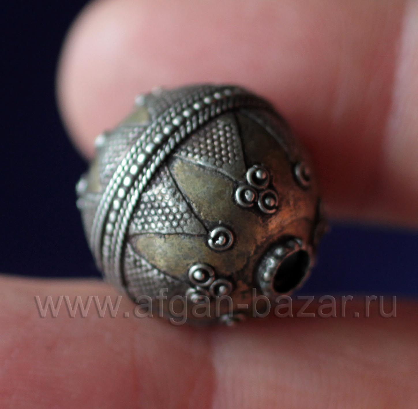 Фурнитура, бусины, бусины, с натуральными камнями, Марокко/Западная Сахара, этнические бусины, Марокко и Западная Сахара, Фурнитура и материалы, этнические бусины ручной работыБусина афганская (серебро)