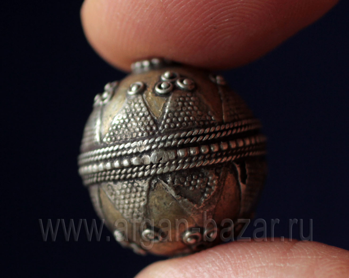 Фурнитура, бусины, бусины, Марокко/Западная Сахара, стекло/керамика, Африканские и арабские украшения, этнические бусины, Марокко и Западная Сахара, Фурнитура и материалы, этнические бусины ручной работыЙеменская бусина из высокопробного серебра с маркировкой мастера. Йемен, йемениты (йеменские евреи), 20-й век