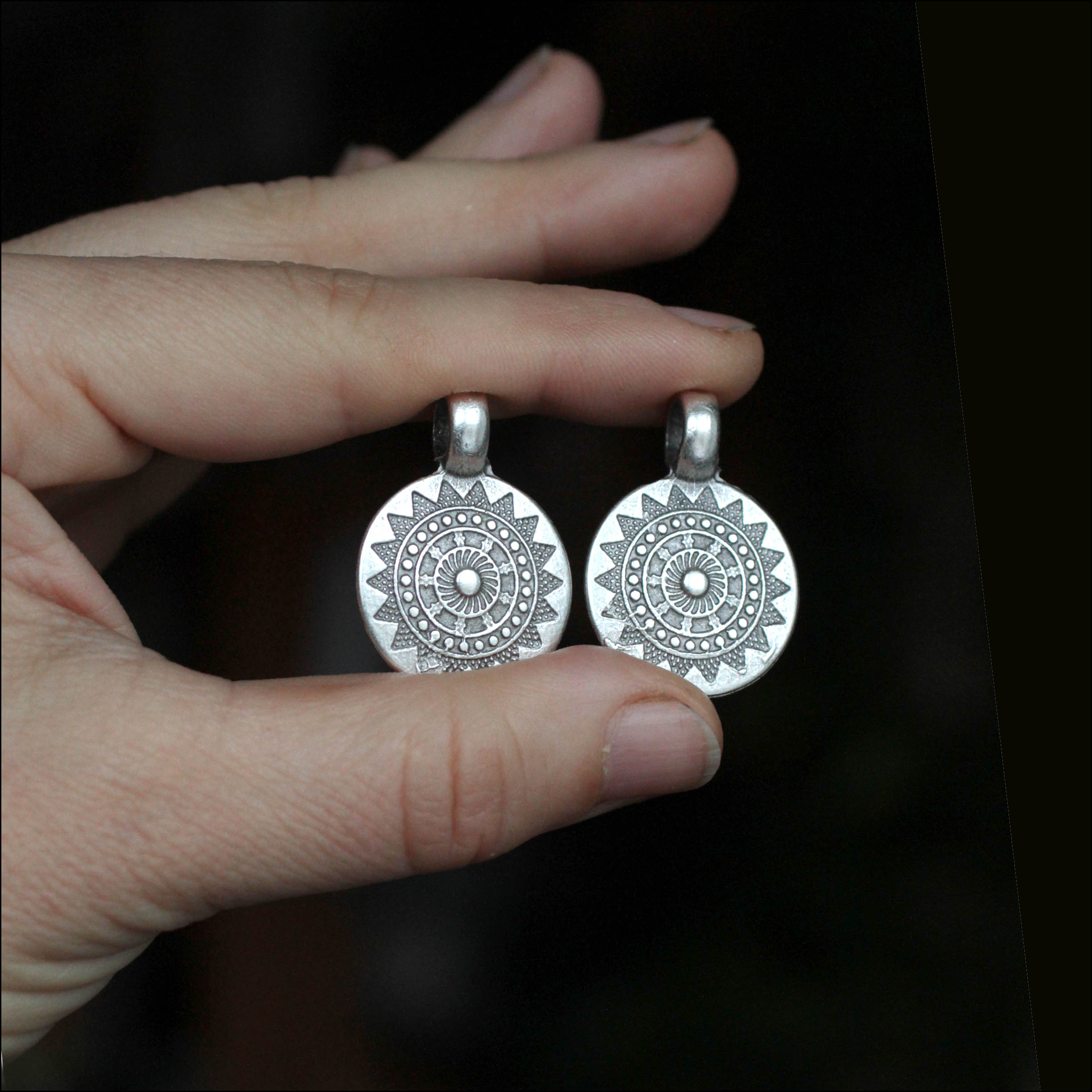 Артикул: 7862размер: 2,1*3,2 см диаметр отверстия 6 мм. цена указана за 1 шт. ВНИМАНИЕ: подвески имеют незначительные шероховатости на лицевой стороне (см. фото) Подобные подвески других размеров и цветов: В цвете "латунь": http://afgan-bazar.ru/node/3183 В белом цвете: http://afgan-bazar.ru/node/4815