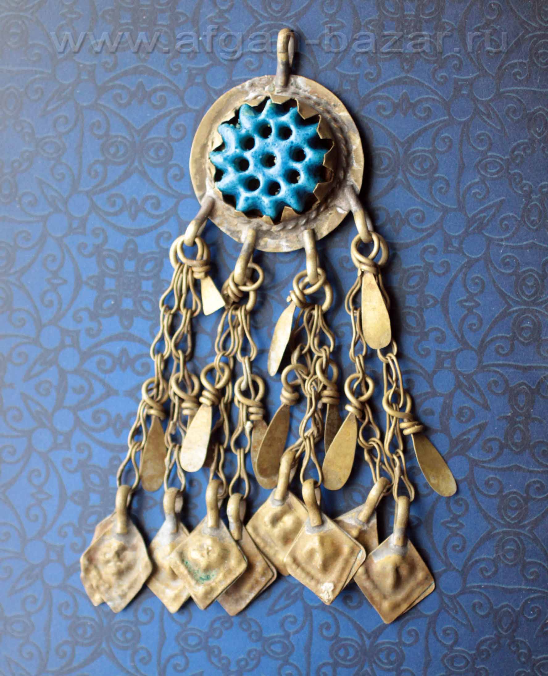 Афганская племенная подвеска - амулет с голубой фаянсовой бусиной. Афганистан или северный Пакистан, 20 в.